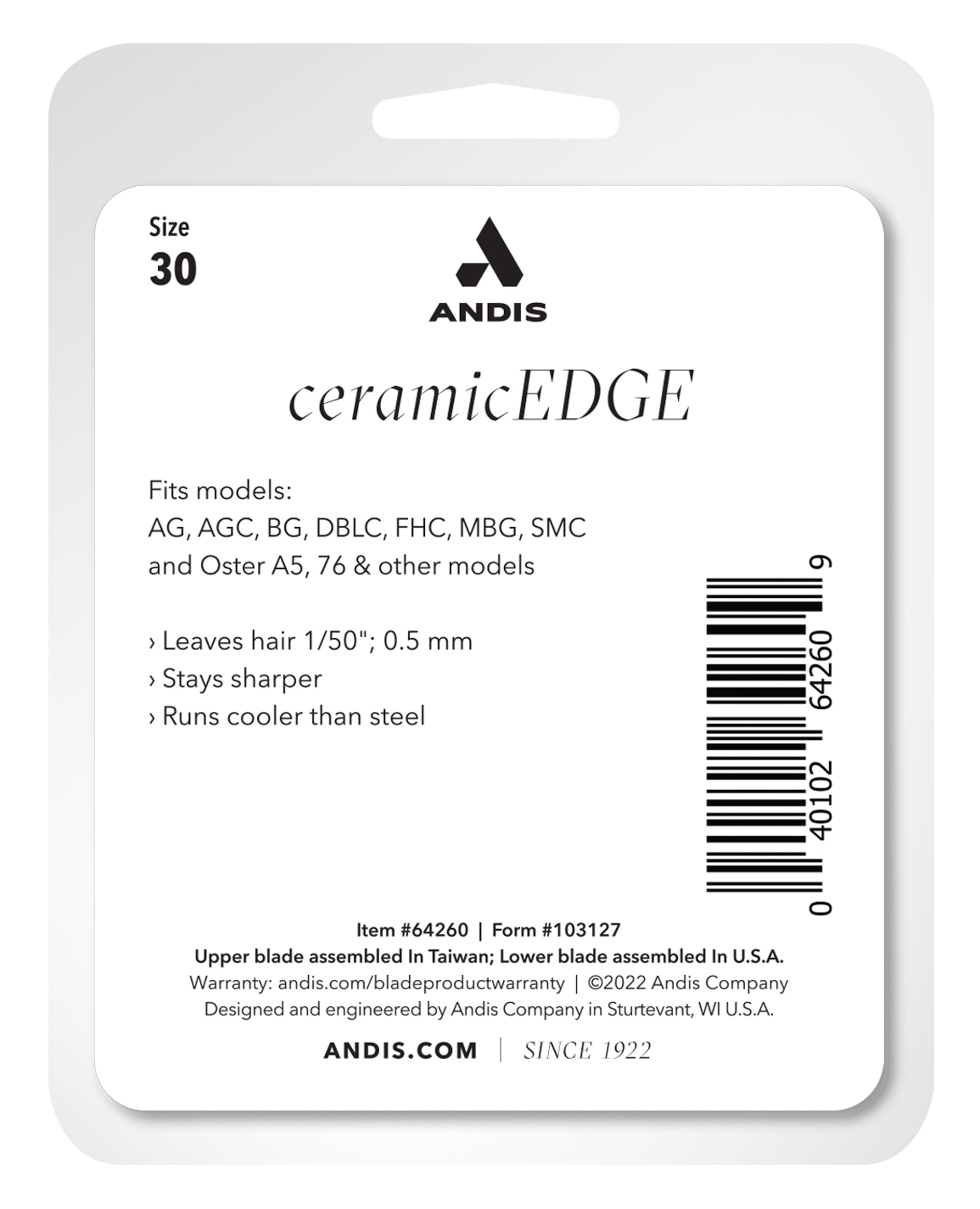 PRODUCT DESCRIPTION: Andis® CeramicEdge® Detachable Replacement Blade Size 30