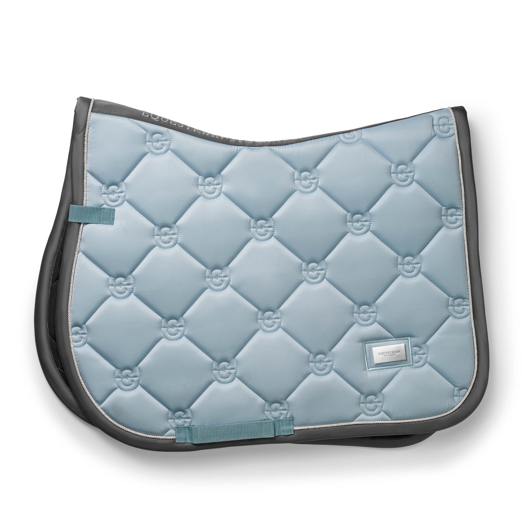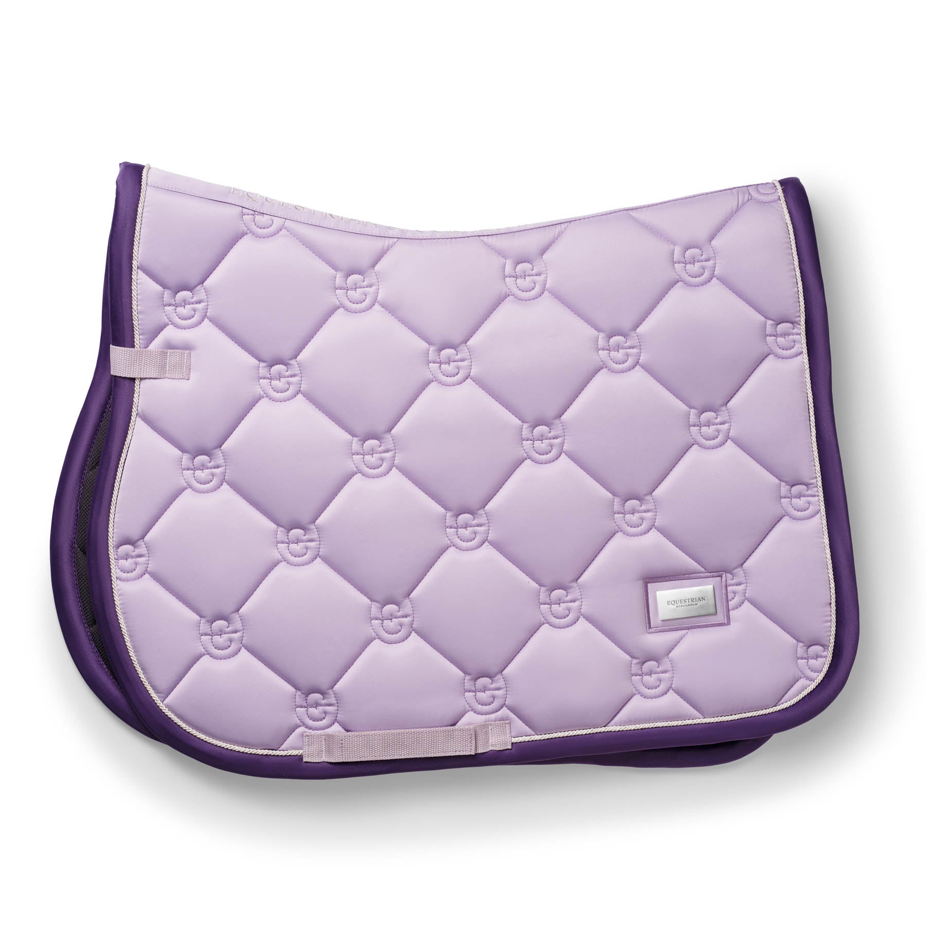 The technical fabric is treated with High IQ® Cool Comfort which gives the saddle pad moisture-wicking and quick-dry properties. It also leaves the fabric with a soft hand and reduces static cling. A contoured spine, billet straps and girth loops combine to offer a secure fit. The glossy, dirt-repellent quilted top is trimmed with double-row cording. Equestrian Stockholm logo badge on corner of pad.