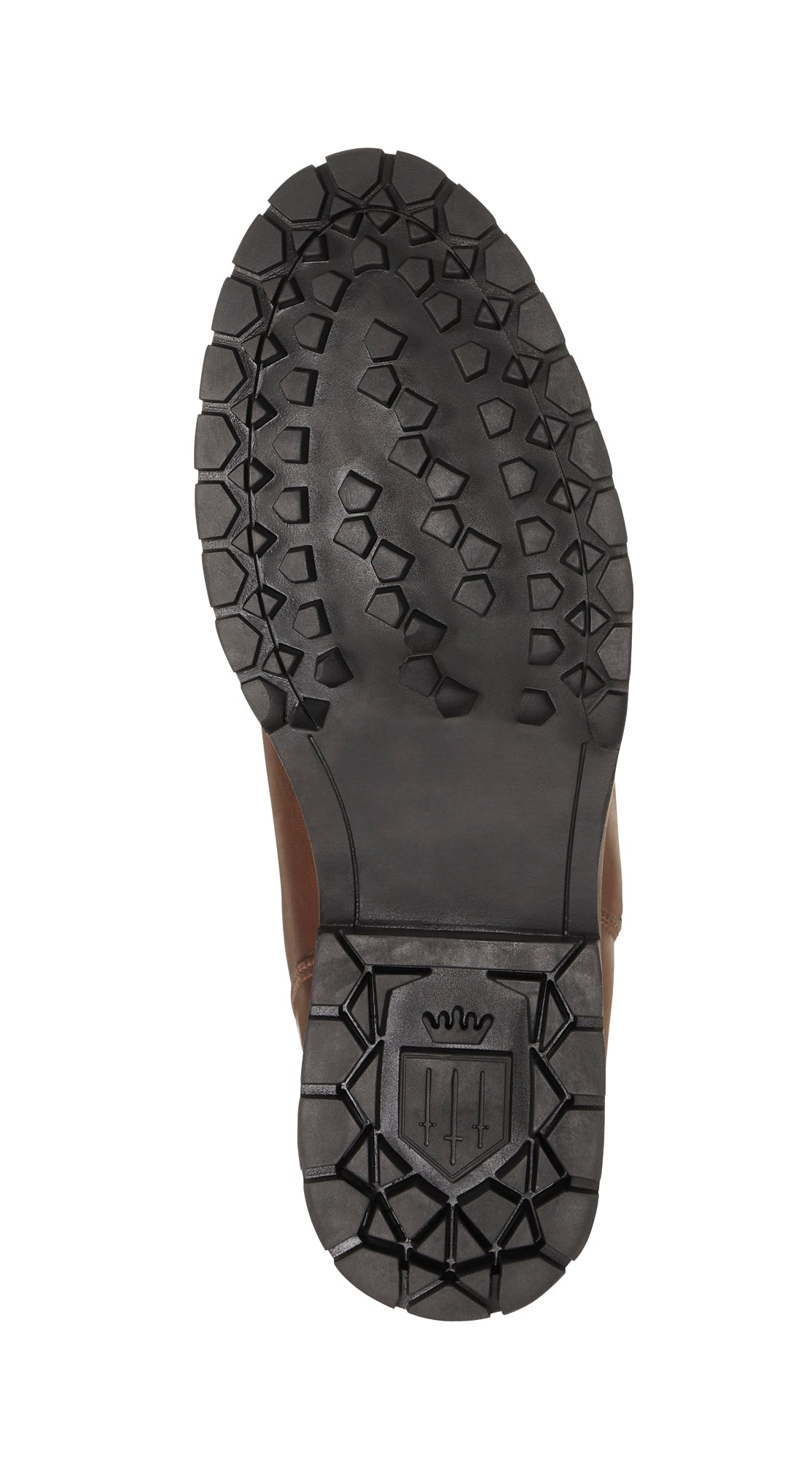 The waterproof Dandridge Tall Boot fits seamlessly into your country lifestyle. An attractive alternative to a muck boot, it is handcrafted in Portugal from beautiful quality Portuguese leather in an oak color. A special treatment added during tanning along with a waxed coating allows the leather to repel water. A German-engineered Sympatex waterproof membrane inside keeps you dry from foot to cuff.