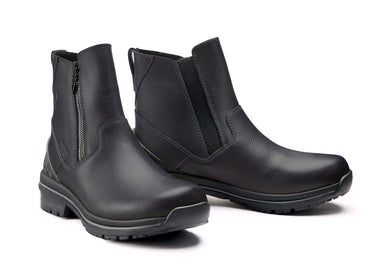 Tough and sturdy, Kerrits® Woodstock Waterproof Barn Boots leverage advanced technologies to keep your feet dry, fresh and comfortable through long days in a barn. The waterproof, seam-sealed, full-grain leather upper with RideDry™ keeps moisture out whether you splash yourself with a hose or walk through wet paddocks. A pebbled texture on the leather adds sporty style and abrasion resistance.