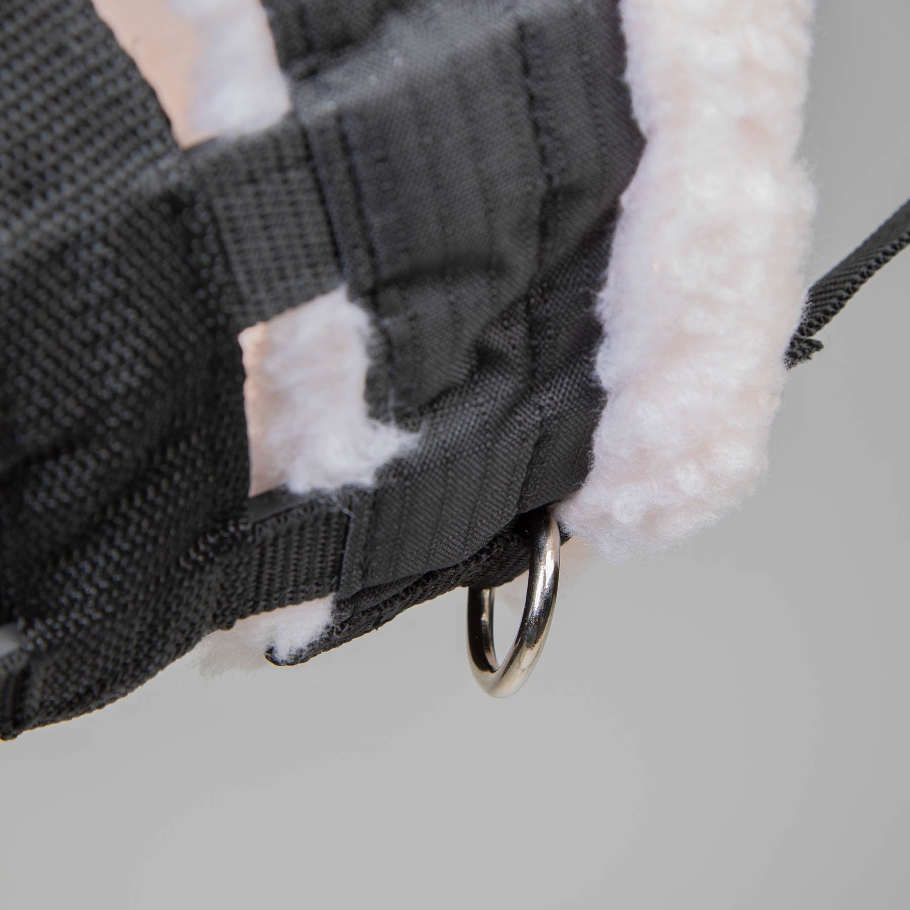 The Shires Deluxe Grass Muzzle helps you control your horse’s grass intake. Fully adjustable at crown, throat and cheeks, the heavy-duty nylon headstall has a hook-and-loop breakaway section at the crown. The muzzle has nylon sides and a rubber base with a small hole to limit your horse’s grazing activity. An additional padded insert at crown and throat adds horse comfort, and an additional fleece lining at the top of the muzzle helps guard against rubs.