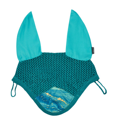 Breathable, lightweight and eye-catching, this WeatherBeeta® Prime Marble Ear Bonnet features a vibrant marble print fabric at the front. The crochet body has a stunning cross stitching design; high-density cotton drill ear covers help reduce noise. Loops on both sides to secure the bonnet to the horse’s bridle.