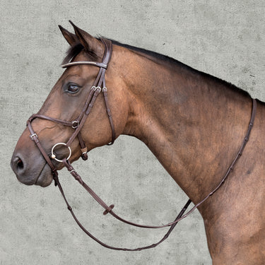 Beautifully stitched in high-quality leather, this bridle has a soft browband embellished with traditional clinchers. Hook stud closures. Schockemöhle DuraSoft Reins, sold separately, are recommended for this bridle.