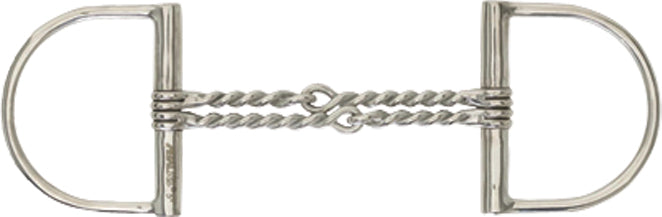 The Double Twisted Wire Pony King Dee Snaffle Bit has a mouthpiece comprised of two strands of tightly woven wire. Made of stainless steel with D-ring cheeks, this bit has a design that puts pressure on the horse's tongue, bars, lips and palate.