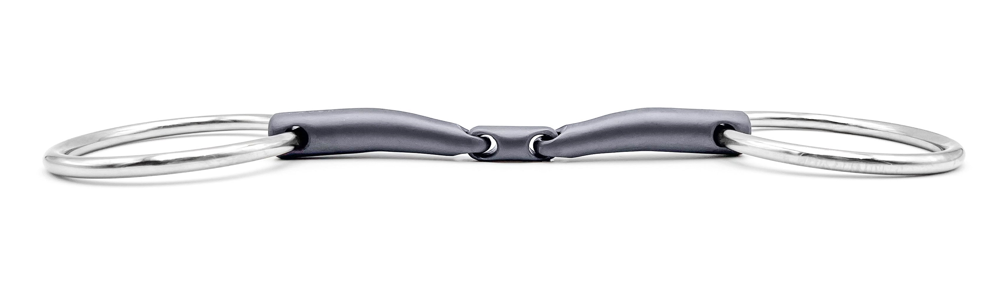 Emil is a lightweight, durable, double-jointed titanium snaffle bit. Its simple, unique design is intended to offer the ultimate comfort to the horse. The whole of the bit surface, including the joints, is 100% smooth to allow complete fluidity and freedom in the mouth.