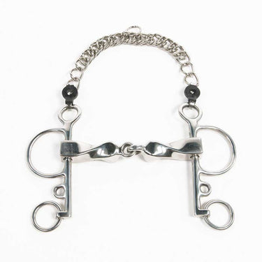 The Metalab Jointed Twisted Pelham is a Level 5 bit made of stainless steel. Features a 5 1/4" large twisted mouthpiece.