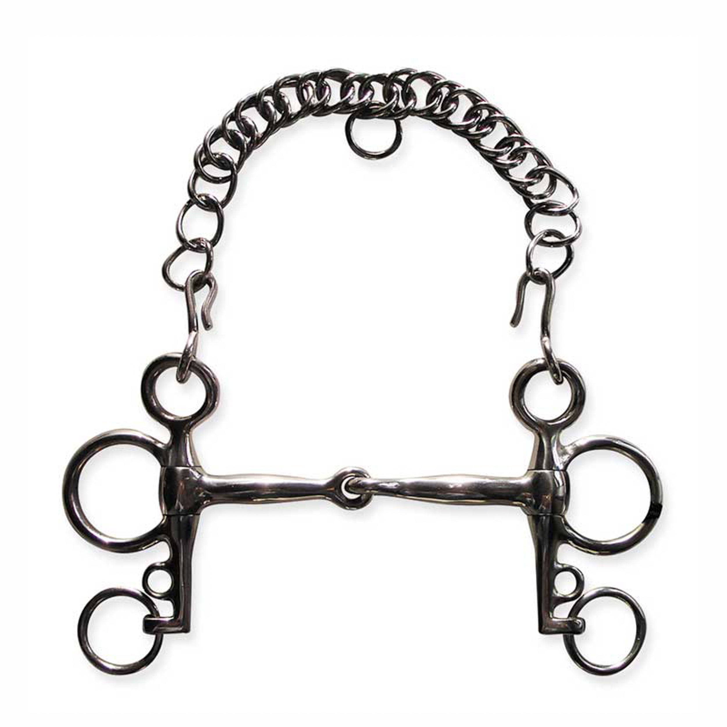 Metalab Solid Jointed Pelham is a Level 3 bit made of stainless steel. Mouthpiece is 13mm diameter; cheeks are 4" Pelham.