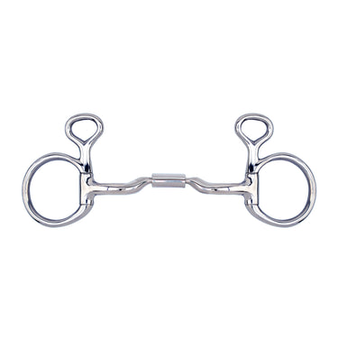 The MB 04 is similar to the MB 02 in that it will rotate on the tongue and apply tongue pressure, however, it has a small (1/4") port that introduces some tongue relief to the horse. The port allows the horse to swallow and move his tongue when he is moving forward and relaxed, which acts as a release or reward. The mouthpiece is curved, and it wraps around the bars and lips instead of pinching.
