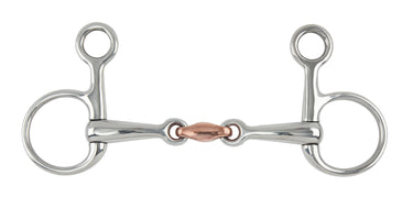 The small shank on the Hanging Cheek Bit, also known as a Baucher Bit, assists with a small amount of poll pressure. The sweet taste fo the copper lozenge assists with salvation. The lozenge mouth also prevents the nutcracker effect produced by a single joint bit.