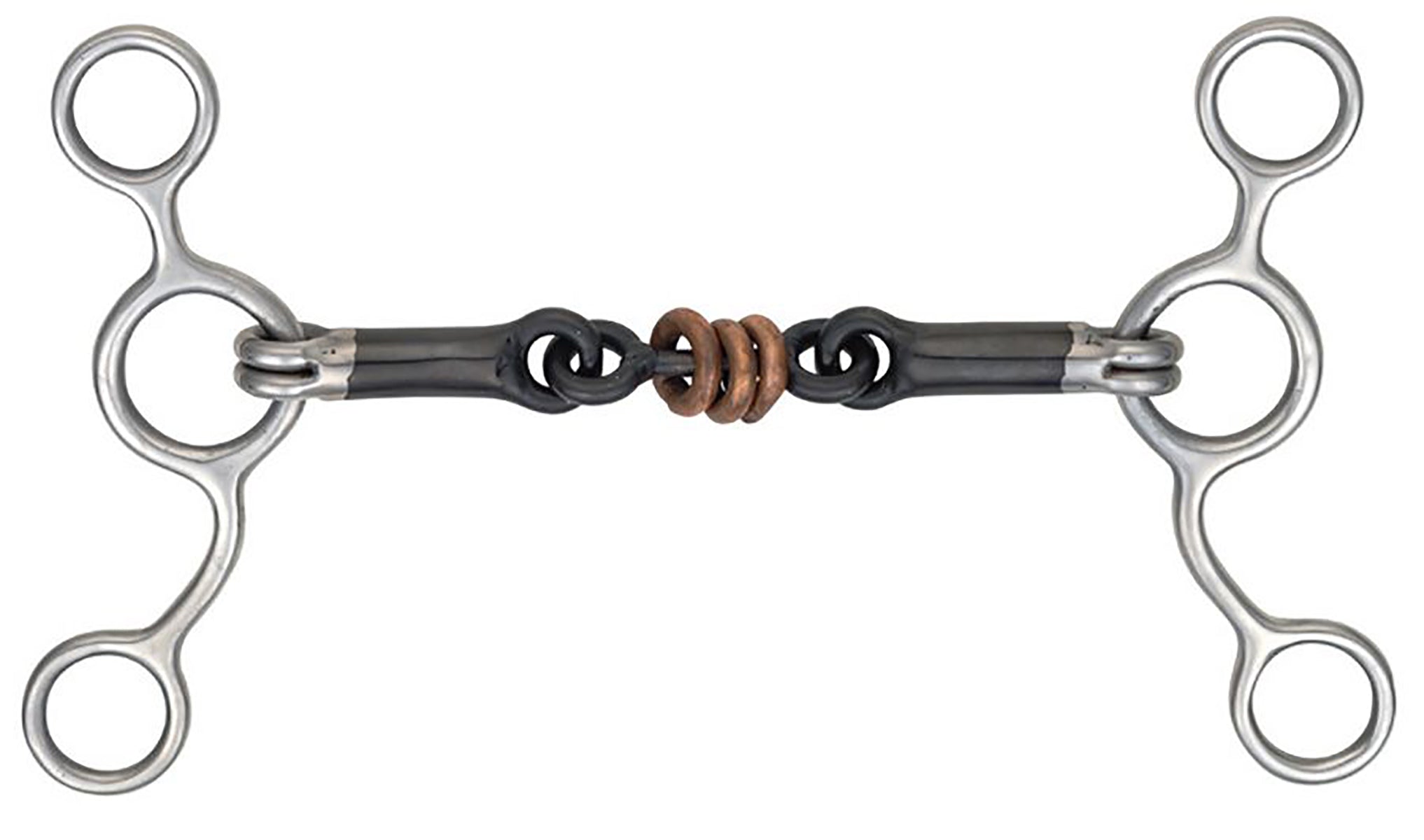 The sweet iron and copper combination in this bit helps to promote salivation and encourage softening. The cheeks give this bit a lever action. The raised copper ribs can help to prevent the horse taking too much of a hold.