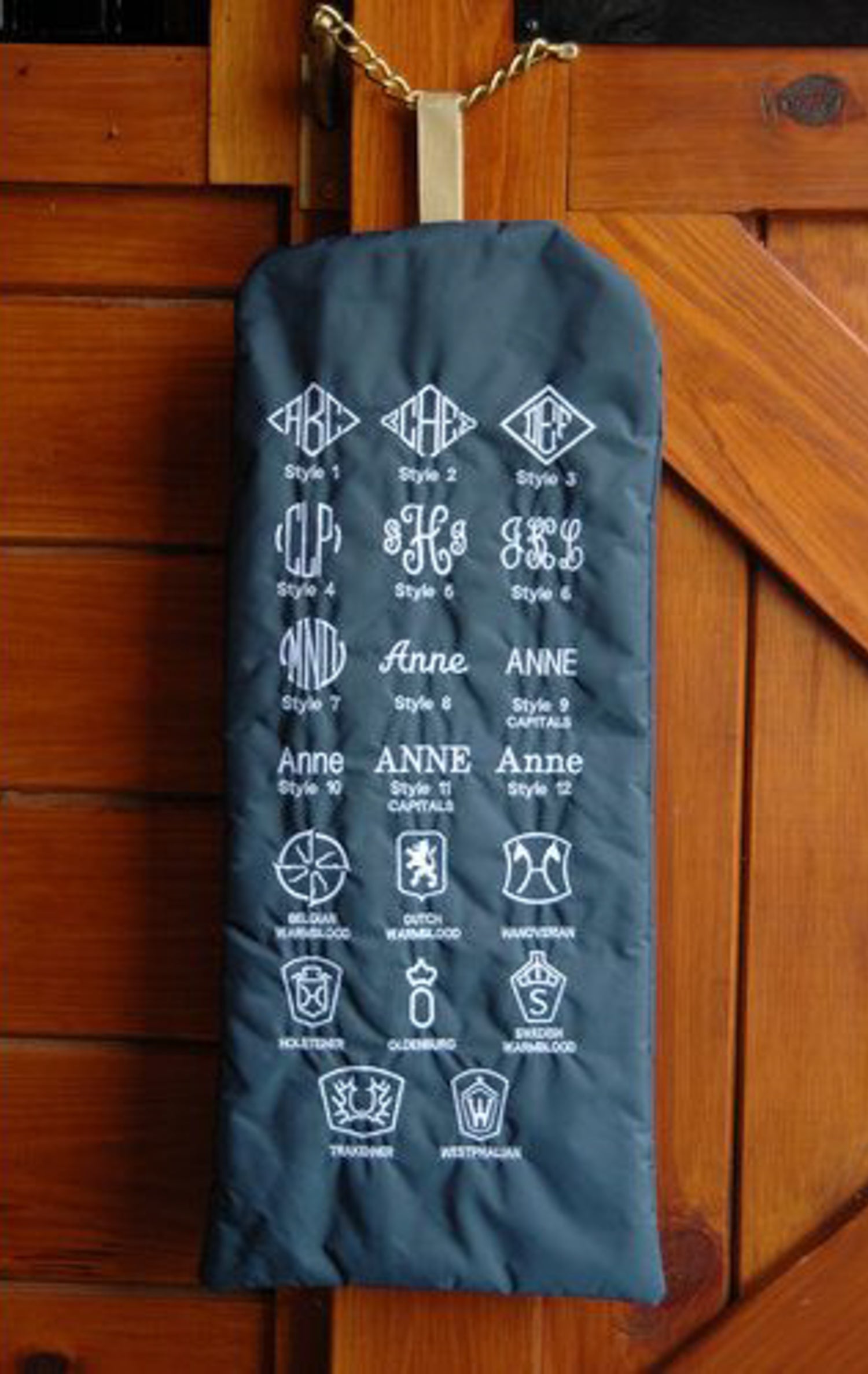 The Custom Fleece-Lined Dressage Saddle Carry Case by Tally Ho zips closed around your saddle’s flaps so that you can store it on a rack or rest it on a fence. Web handles position the saddle to be carried upside down. An optional shoulder strap can be added to carry the case right side up. Lining is black. Choose your case color and trim color. Consider adding a monogram for even more customization. Spine is 29 1/2"L; flaps are 25"L. Allow 4-6 weeks for delivery.