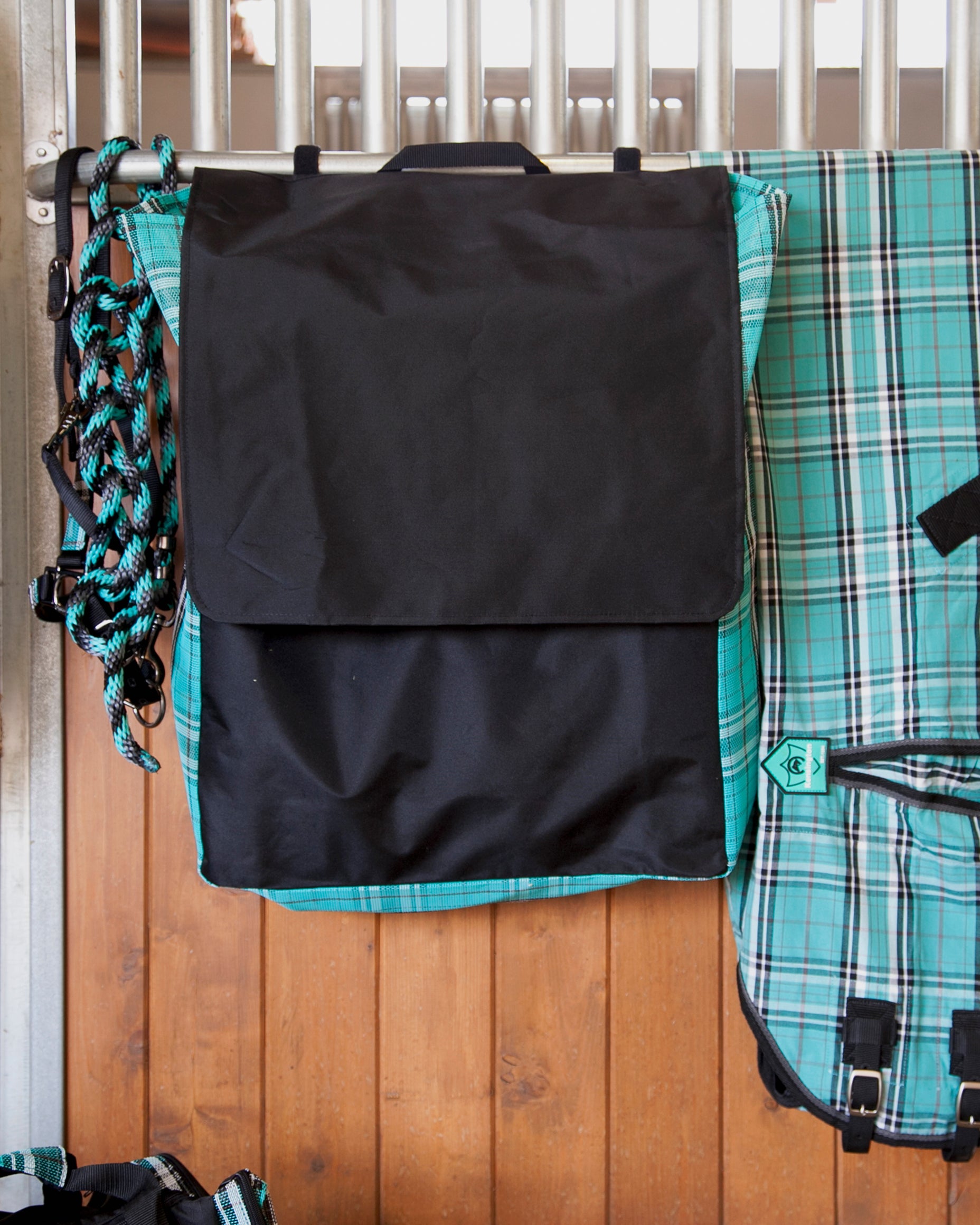 The Kensington™ All Around Blanket Storage Bag is made of a ballistic nylon. It can attach securely to a stall front, trailer or tack room. The large opening allows you to easily place winter blankets, sheets, coolers, sport boots, fly masks or any other items belonging to your horse that you want to keep organized and out of the way. Fitted with interior carabiner closures and styled with an over-sized front flap that is perfect for an embroidered monogram or name.