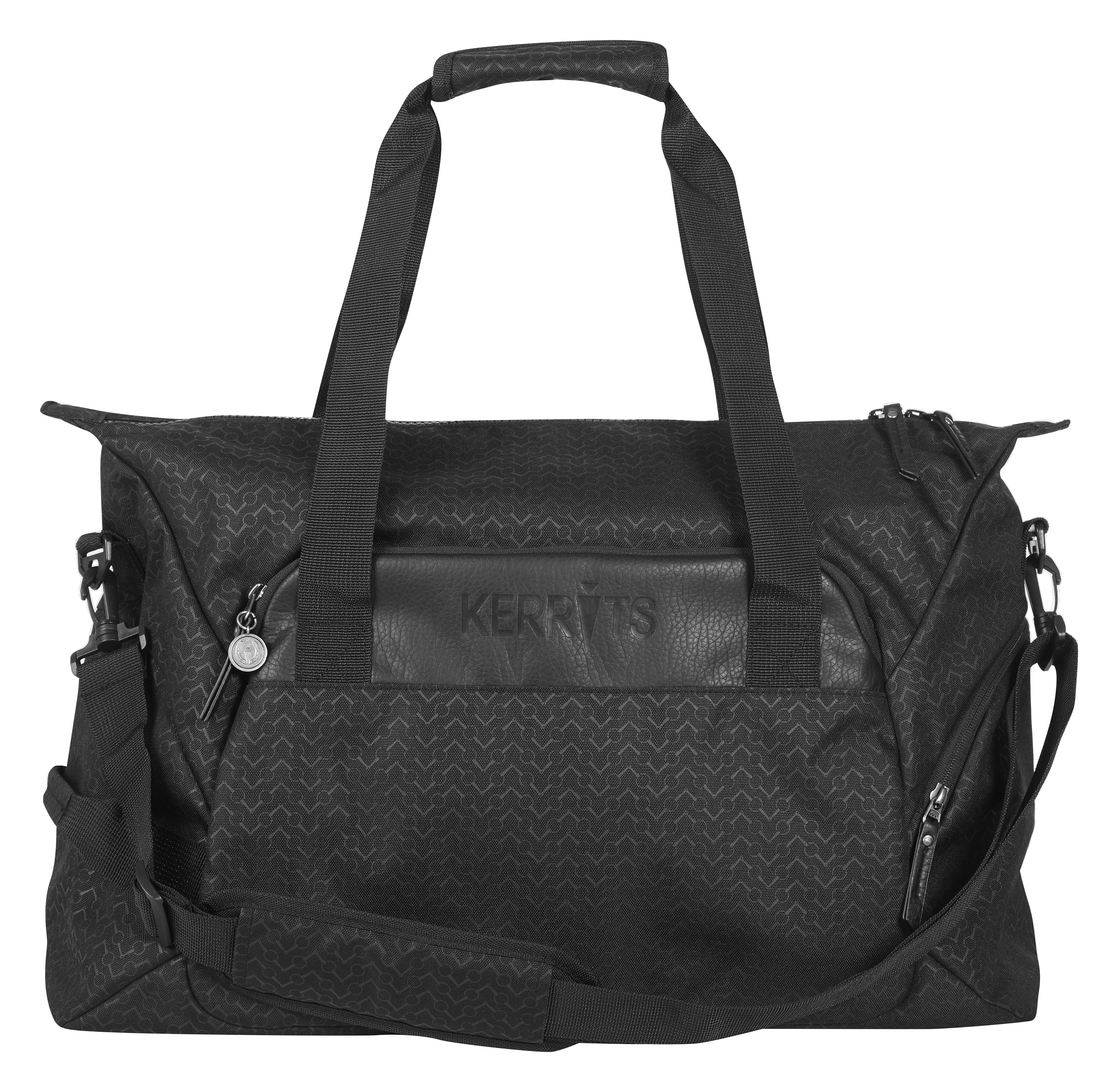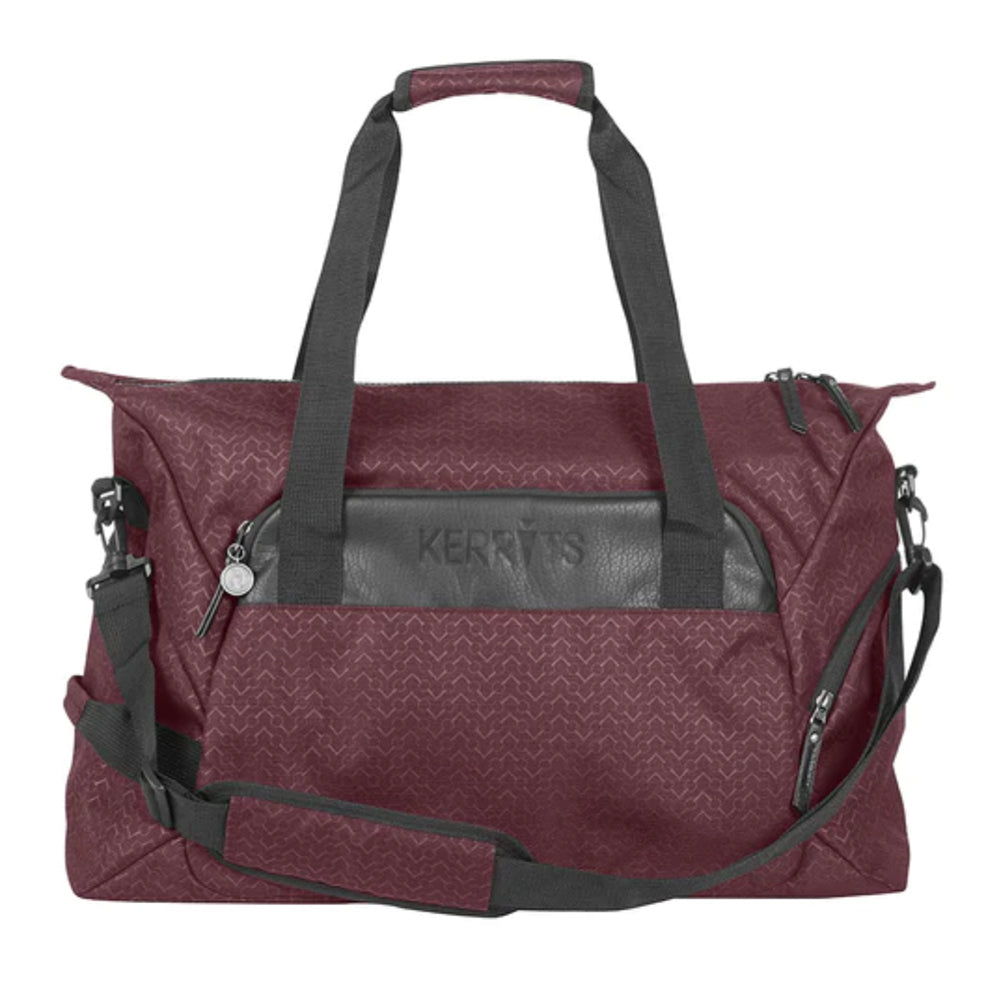 This Kerrits® EQ Duffle Bag is made to stand up to the rigors of a life with horses. This soft-sided bag is constructed from durable fabric that wipes clean with ease. Kerrits exclusive Chevron Bits pattern is subtly embossed on the outside; the lined interior provides ample storage space and has multiple thoughtfully placed pockets.