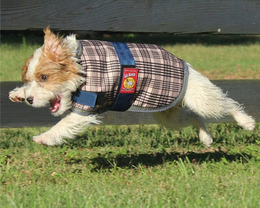 Your horse’s canine sidekick will look dapper and stay comfortable in this 5/A Baker® Dog Blanket! It offers your pup the same great protection from the elements as 5/A Baker® horse turnouts, including a 1500 denier poly ripstop outer that withstands an incredible amount of abuse. It’s insulated for warmth by 200 grams of Curvofil IV and lined with satin-smooth fabric that polishes your dog’s natural haircoat. A waterproof/breathable membrane bars water penetration yet allows water vapor from perspiration to pass through to the outside.