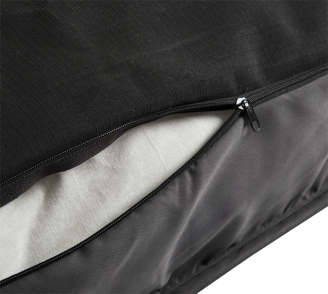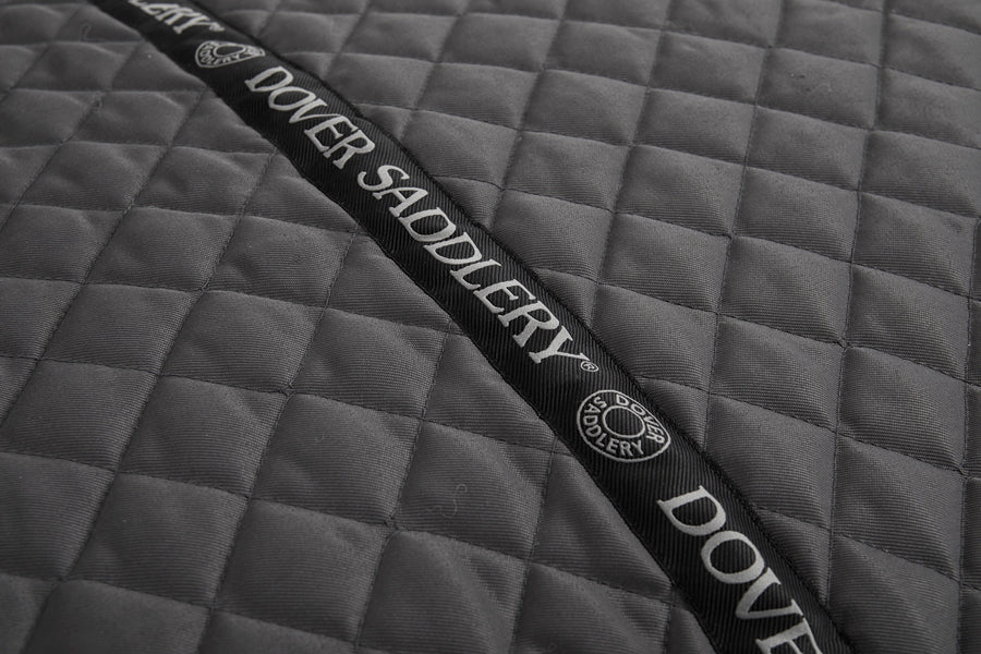 Comfortable yet rugged, our washable Dover Dog Barn Bed Cover is made for use in a barn, showground, campsite—or a house! It pairs a classic, quilted, “saddle pad” top and a water-resistant 600 denier ripstop nylon bottom. Zip it over our Dover Dog Barn Bed Filler made with eco-friendly recycled fill, or use it to replace the cover on your current dog bed. Filler is sold separately. Gray with black trim.