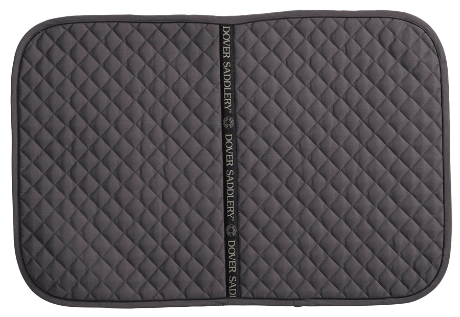 This classic quilted design has an underside covered in an anti-slip silicone grip printed in the Dover nail head design. The spine allows it to lie flat or flip up against a seat back. Gray with black trim.
