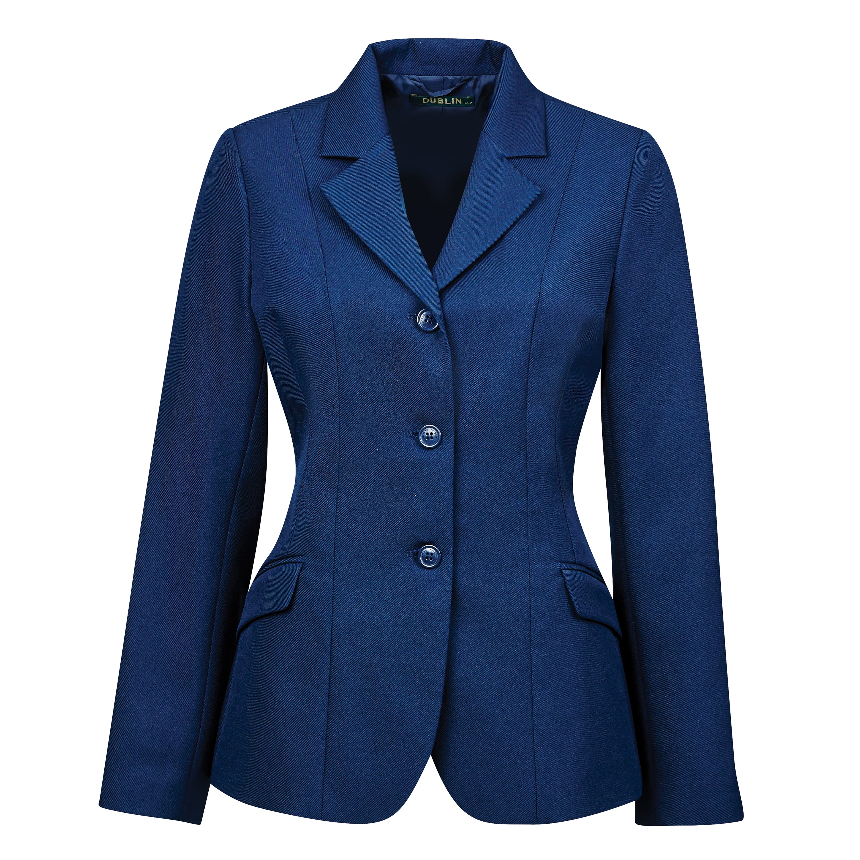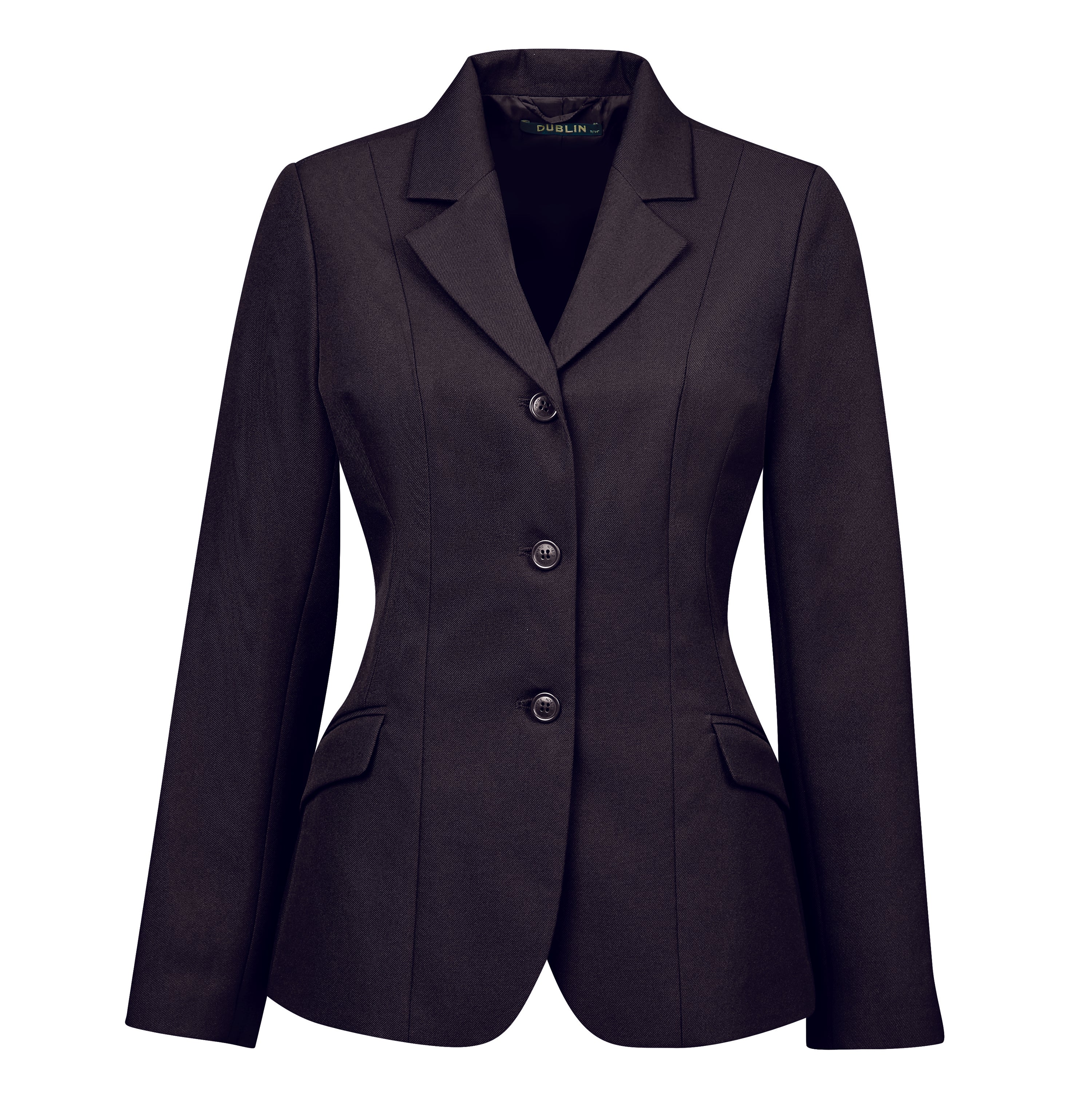 Back by popular demand, the affordable and traditionally styled Dublin® Ashby Show Coat features washable woven fabric. It’s fully lined, with a three-button front, two front flap pockets and double-vented back. Princess seam construction flatters your in-saddle form.