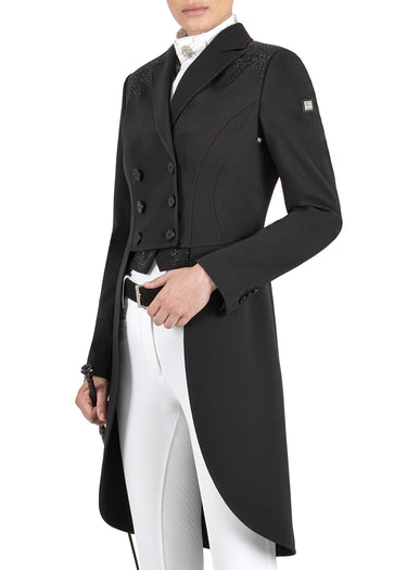 The Gresig tailcoat is tailored to provide a perfect fit and includes an adjustable weight feature in the tails. Micro-studs also accent the vest points.