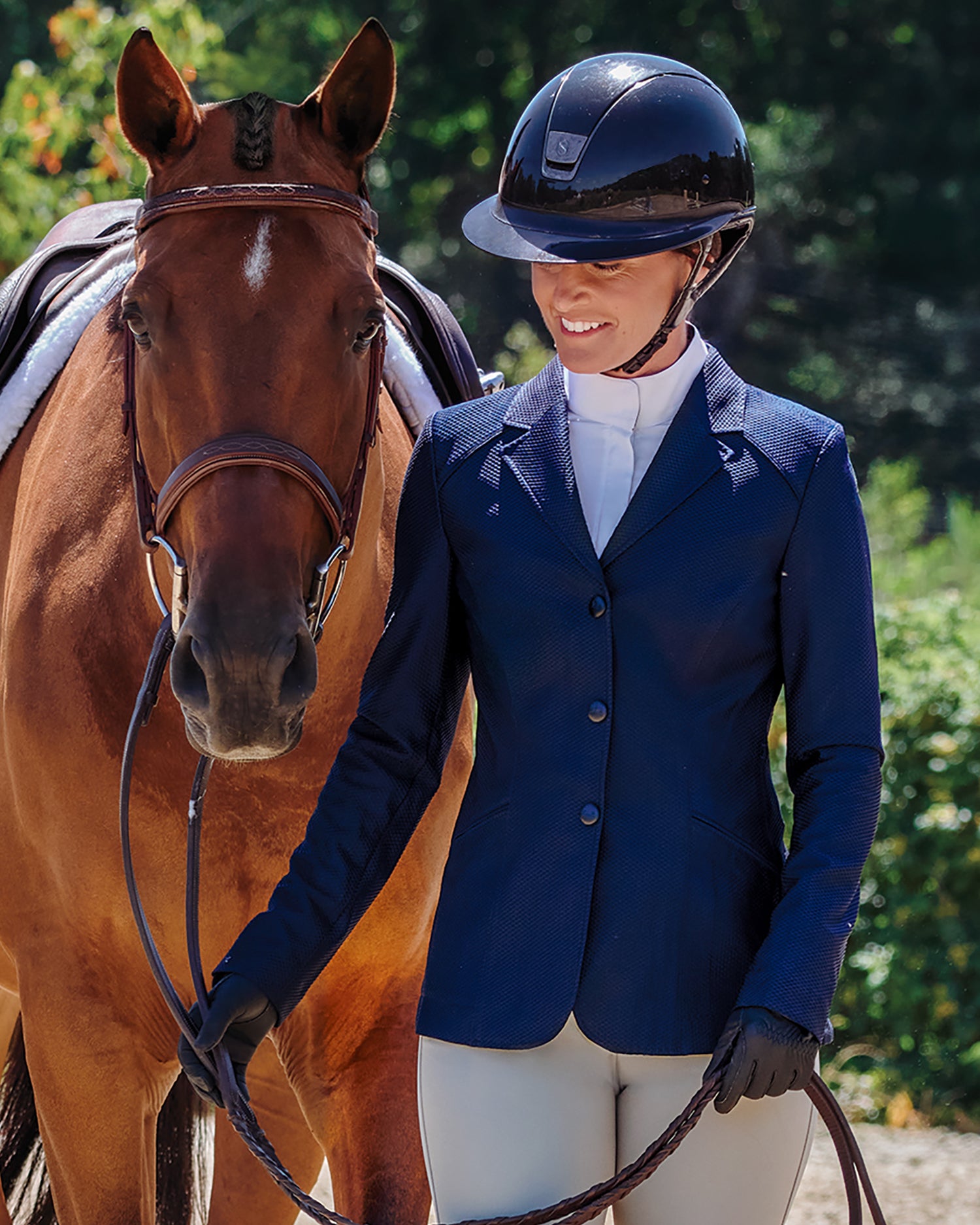 The R.J. Classics Addison Air Show Coat delivers modern styling and all-day comfort at an accessible price point. Crafted from ultimate-stretch mesh fabric, its unconstructed design maximizes airflow and freedom of movement while maintaining a polished silhouette. Sleek, contemporary branding adds a fresh, sporty edge, while performance-focused details like a hidden interior zipper and back number holes make it show-ring ready. Lightweight mesh fabric is breathable, wicking, antimircobial and designed to move with you!