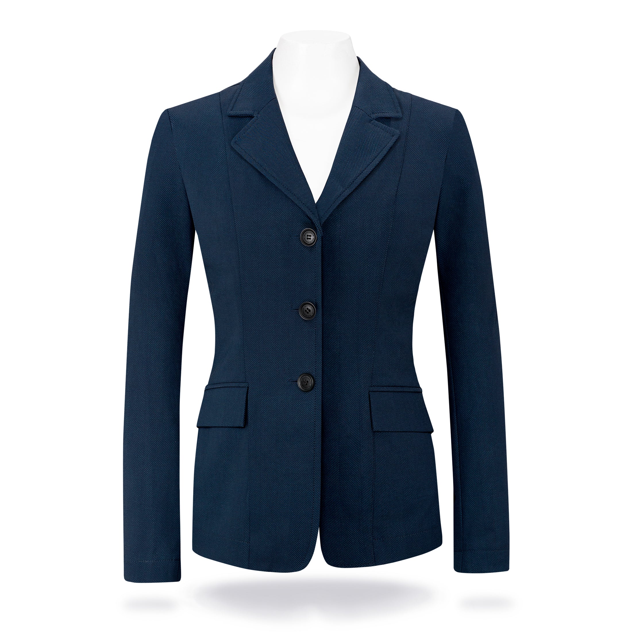 A modern, unconstructed design, this show jacket is made without a lining or shoulder pads to support the rider’s freedom of motion. Premium Italian Jersey constructed with eco-friendly practices allows cooling airflow, dries quickly, provides UPF 50, and resists both pilling and wrinkles.