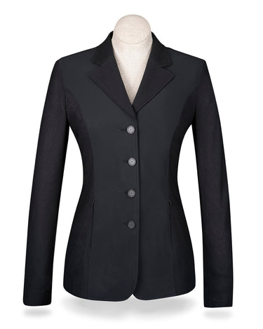 With its unique styling, the R.J. Classics Ladies’ Melody Mesh Show Coat offers the rider an elevated, athletic garment while maintaining the tradition of equestrian sport. The lightweight mesh body fabric provides extreme comfort and breathability, while the Italian jersey front panel offers a conservative contrast.