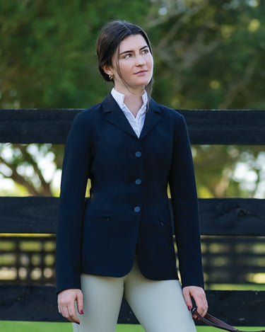 R.J. Classics brand-new Ladies’ Sloane Show Coat brings tradition and ultimate comfort at R.J. Classics most accessible price point. Featuring an unconstructed design for freedom of movement and a comfort stretch fabric that will make you feel comfortable and confident walking into any show ring. The hidden interior zipper eliminates gaping, while the back number holes neatly tuck your number strings inside the coat.