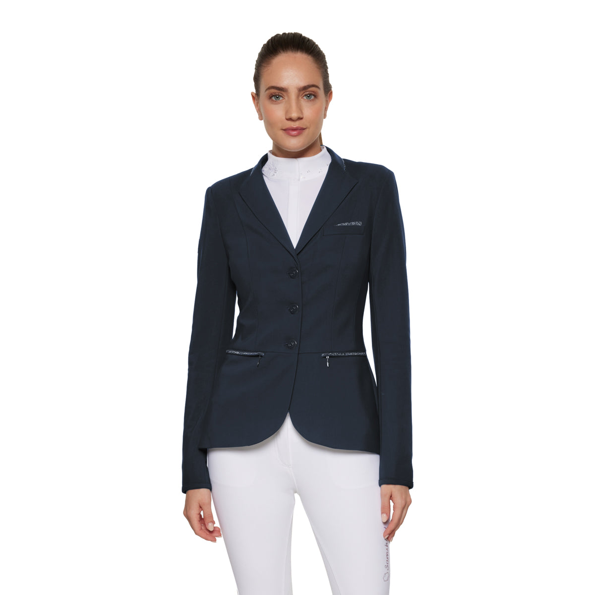 The Samshield® Ladies’ Victorine Crystal Show Coat offers a performance based design. Crafted from breathable, stretch fabric, this jacket provides exceptional freedom of movement and comfort. Samshield blazon with crystal details, UPF 50+ sun protection, wrinkle-resistant finish, and machine washable. Front zip with tonal buttons. Mesh lined for added breathability.