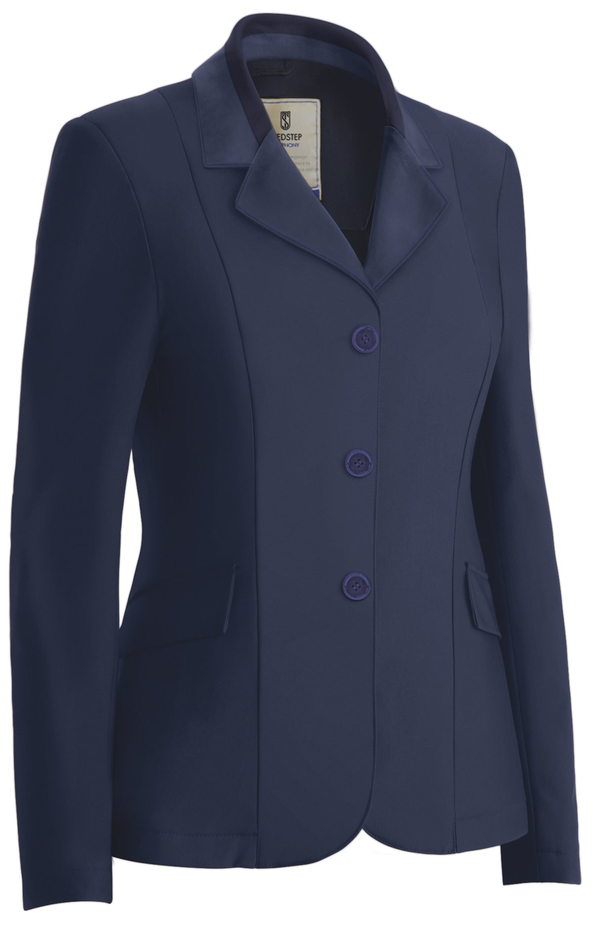 The Tredstep™ Symphony Classic Show Coat delivers a perfect balance between athletic performance and traditional show ring style. Offered at an exceptional price, this ladies’ show jacket will stand the test of time. It’s tailored in easy-care, breathable, “noiseless” twill fabric with four-way stretch and a soft hand. Satin trim and topstitch detail at the collar make sophisticated finishing touches. Features include a full stretch fabric lining, angled flap pockets and double back vents. Extended sizes available.