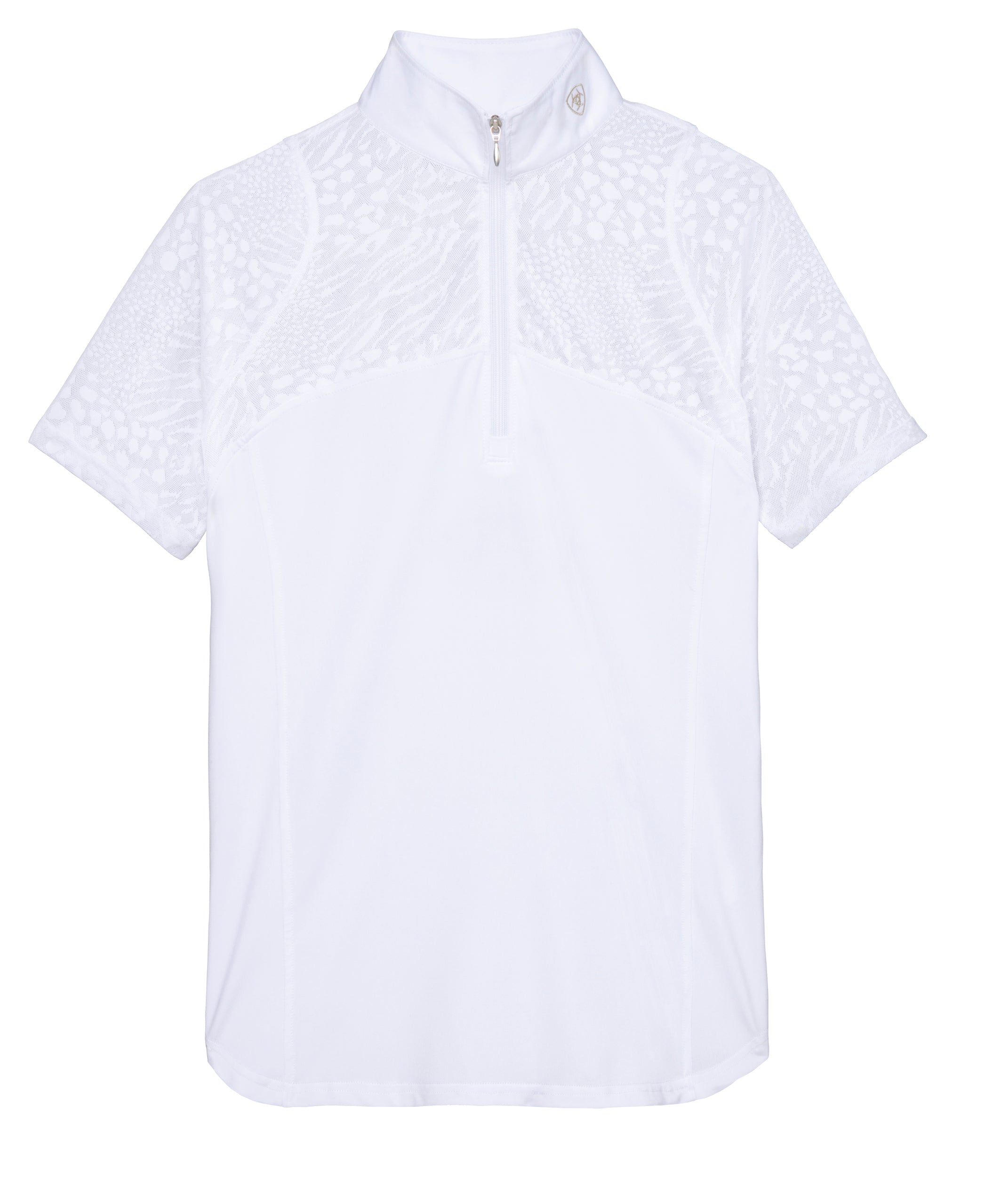 Looking stylish while staying cool is a breeze in this lightweight Ariat® Airway Show Shirt. Strategically designed to breathe in all the right places, it features subtle animal print mesh at the yoke and short sleeves. Built-in stretch and a flexible fit let this ladies’ show shirt move with you and lie neatly all ride long.