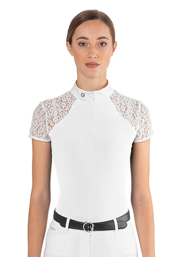 The Florentine Show Shirt has a fashionable halter-neck design and a flattering cut. It’s contrasted with stretchy, white-lace shoulders and sleeves.