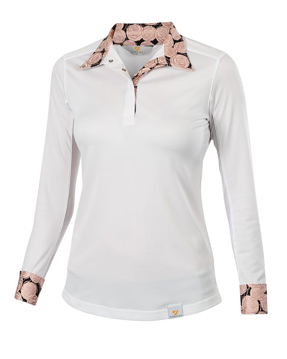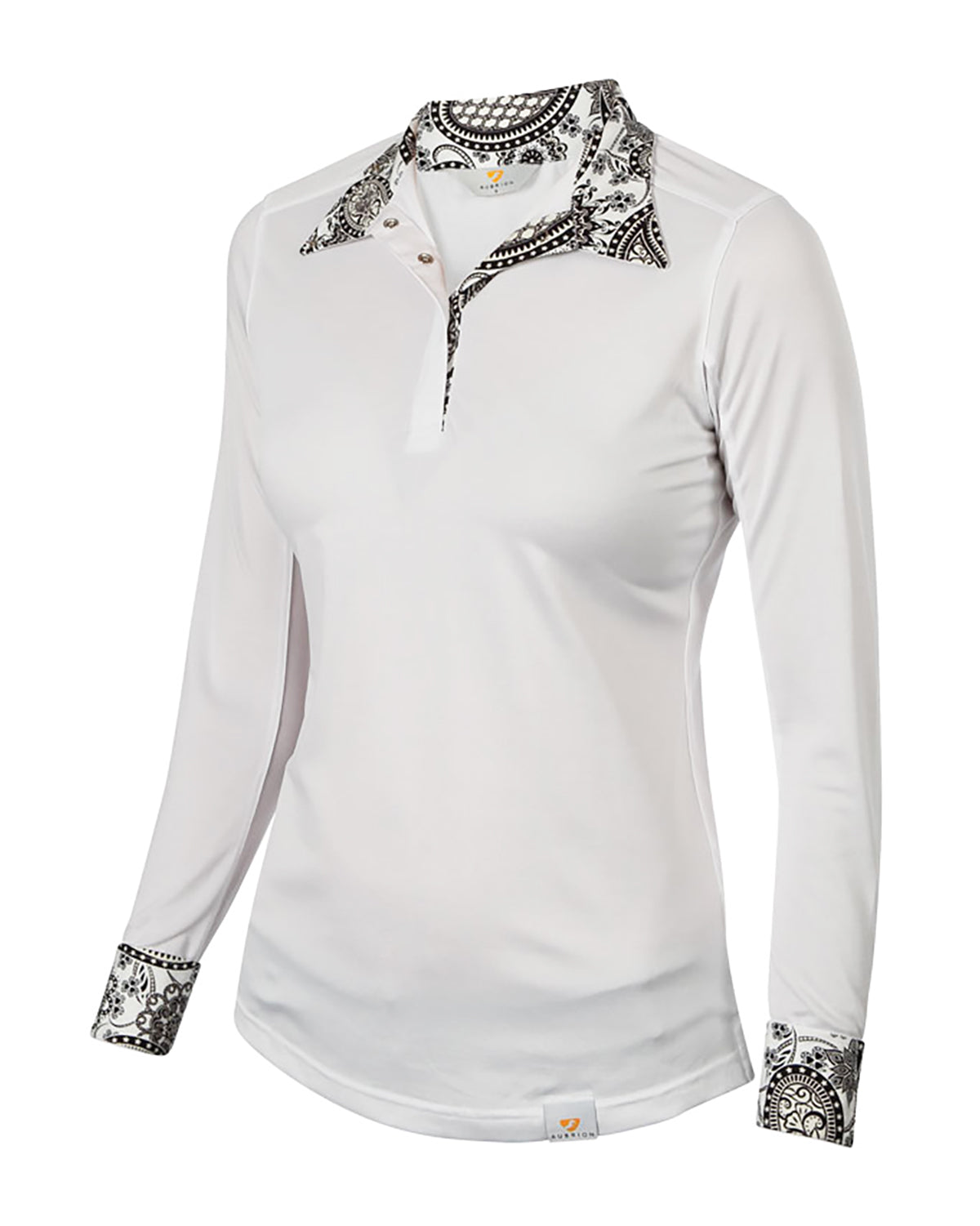 Equestrian Style Kids’ Show Shirt lets the young rider make a statement with a stylish collar and cuff design. Perforated stretch fabric with moisture wicking helps keep the rider cool and comfortable in the show ring. This quality kids’ show shirt offers a seamless fit and ventilated fabric along the inside arm for added cooling. Snap closures on the collar prevent gapping and bunching, and eye-catching cuff snaps help keep the shirt in place.