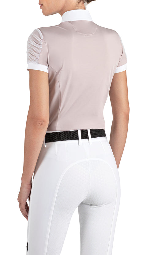 The Equiline GinnyG Competition Shirt is a gorgeous design for your show ensemble. Technical piqué fabric with built-in stretch and breathability has feminine stretch-tulle detail on the sleeves. The Equiline logo completes the collar.
