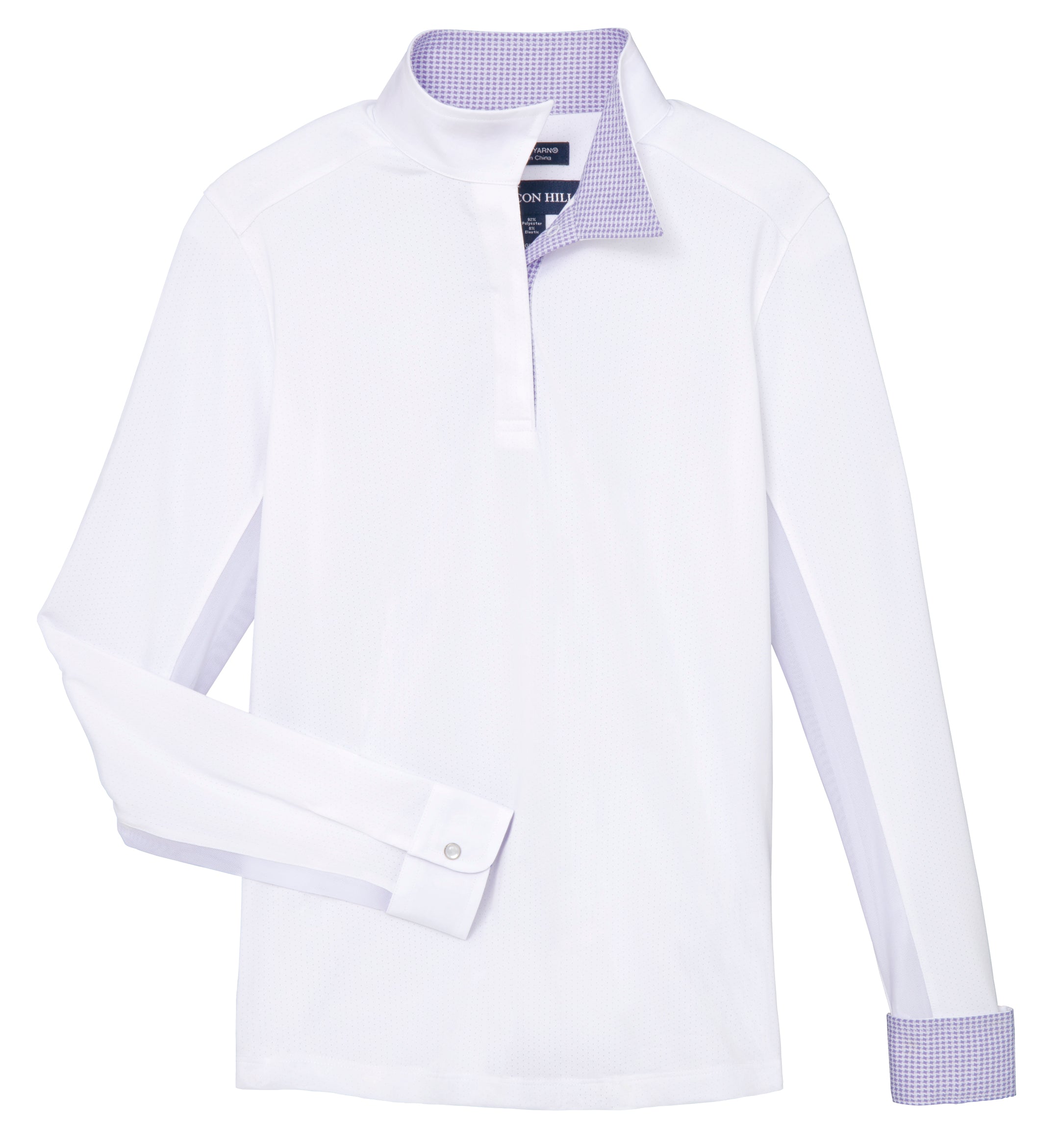 The Beacon Hill Girls’ Long Sleeve Show Shirt by Essex Classics is made of refreshing nano-tech performance fabric to help keep the young rider cool and comfortable. Lightweight, soft and stretchy, this children’ show shirt wicks moisture away from the skin and offers the added cooling ventilation of mesh under-sleeve panels. The finely knit fabric provides antibacterial and deodorizing action, protection against ultraviolet rays and the convenience of Scotchgard™ stain resistance.