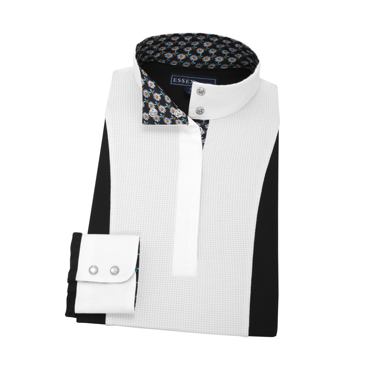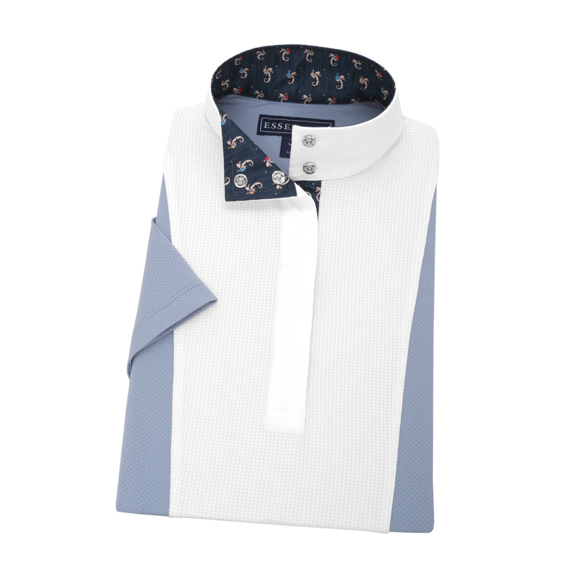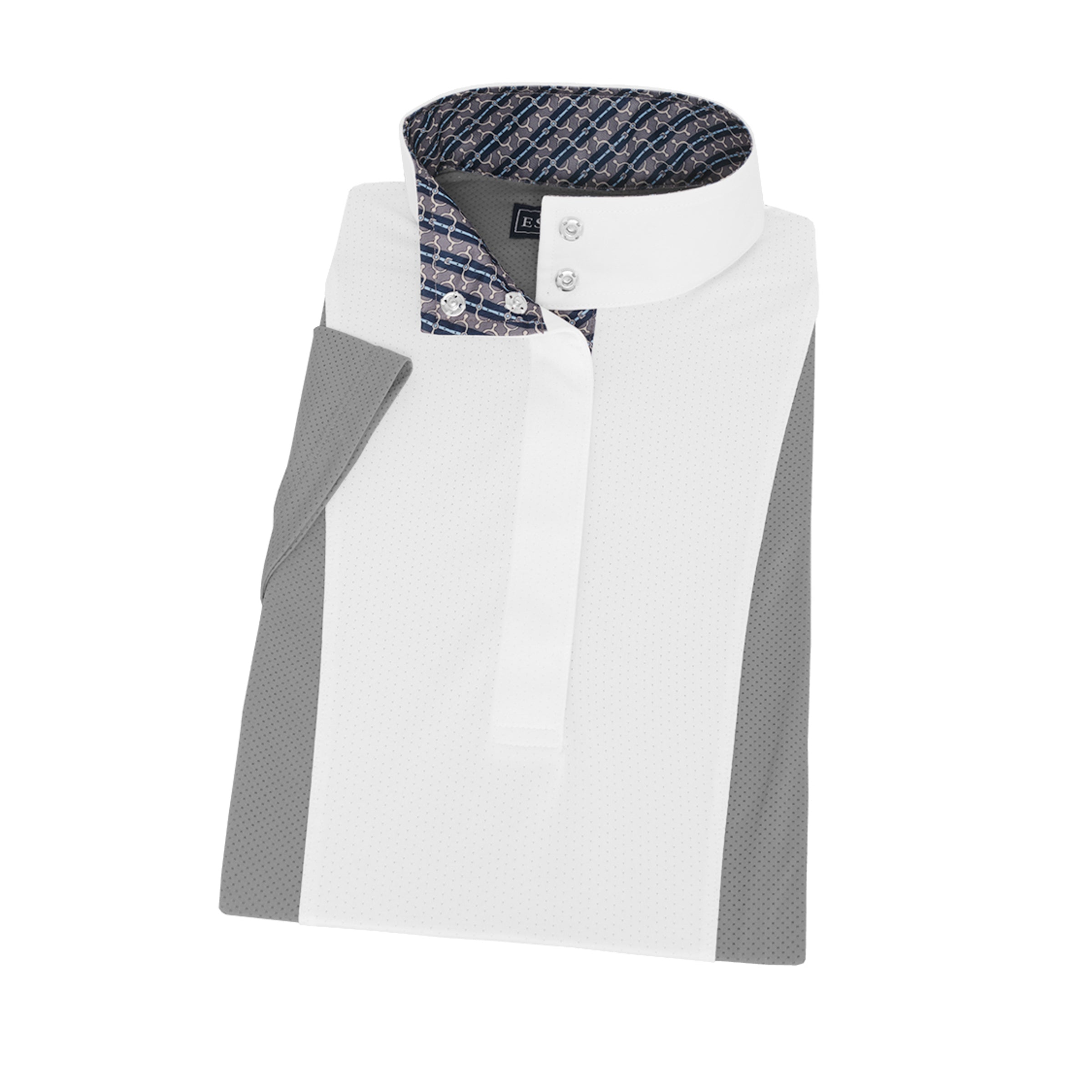 For comfort and color, this Essex Classics Luna Performance Short Sleeve Show Shirt makes a perfect choice. A white, full-length panel front with crisp white show collar partners with a solid color on the sides and back for a flattering look. Print trim details the inside of the collar and placket.