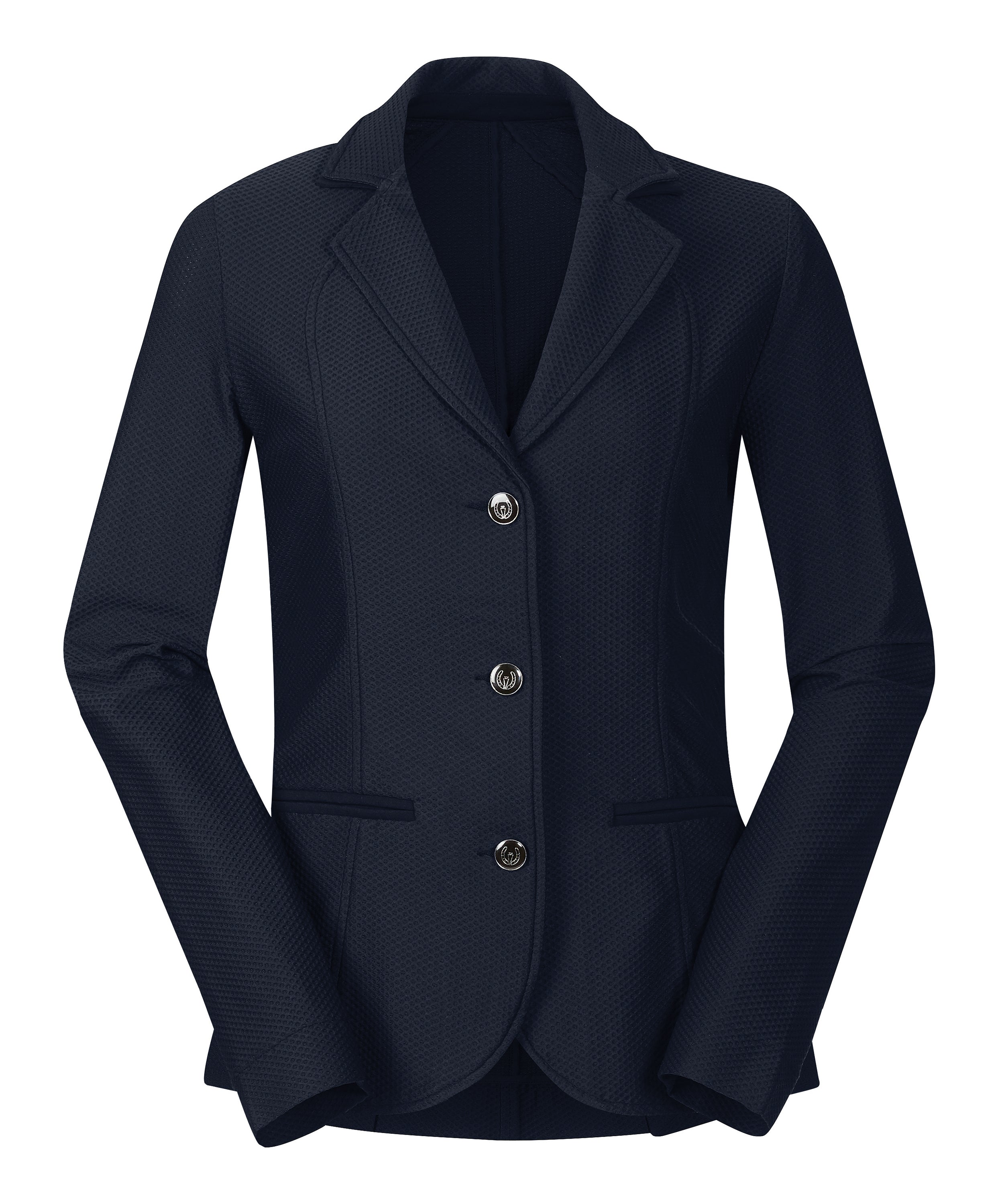 Classic features include eyelets for number strings, hidden front zip under traditional three-button front closure, faux front pockets and a double-vent back ensure that young riders are show-ring ready. Includes two sets of exchangeable buttons. No trips to the dry cleaners necessary—this coat is machine washable and quick drying.