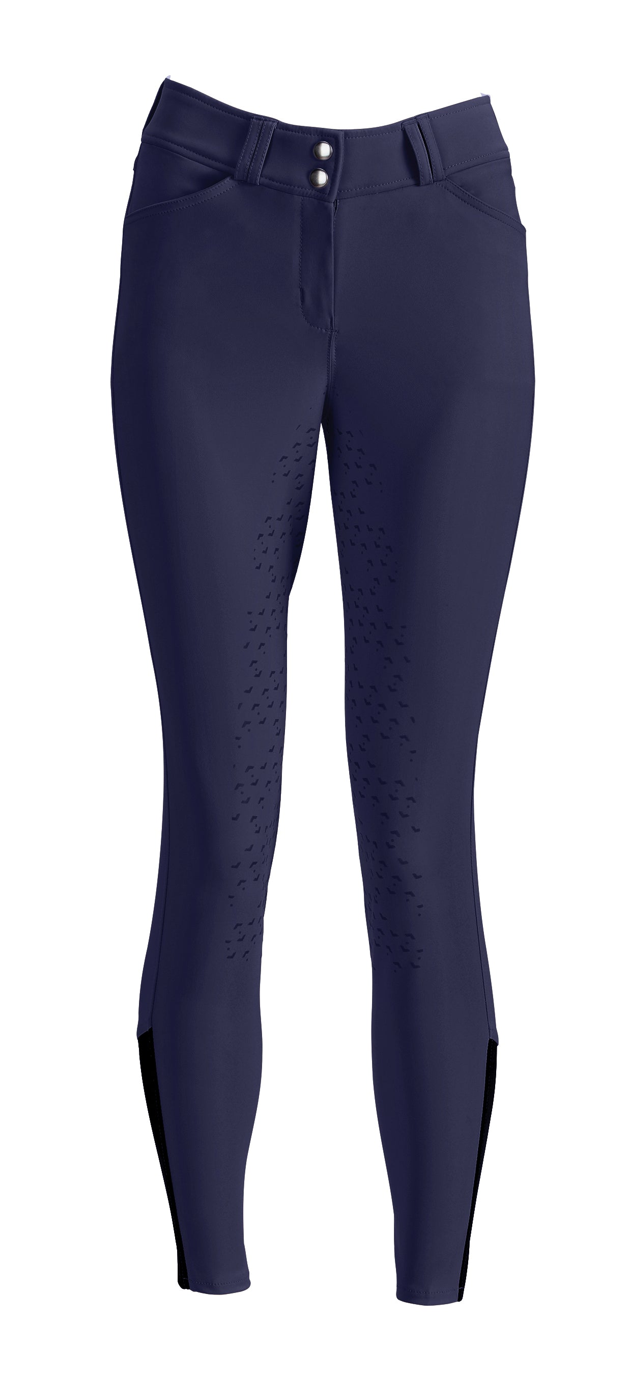 This breech maintains flattering, stay-put comfort and coverage with themid-rise EquiTrue Rise™. The unique design moves with you, keeping true to your form as you ride or bend to groom. No matter how you move in the saddle or out, the soft, covered waistband and seat stay put without pinching, binding or slipping. You can concentrate on your horse—not your breech! The EquiTrue Rise sits just below the belly button on most riders.
