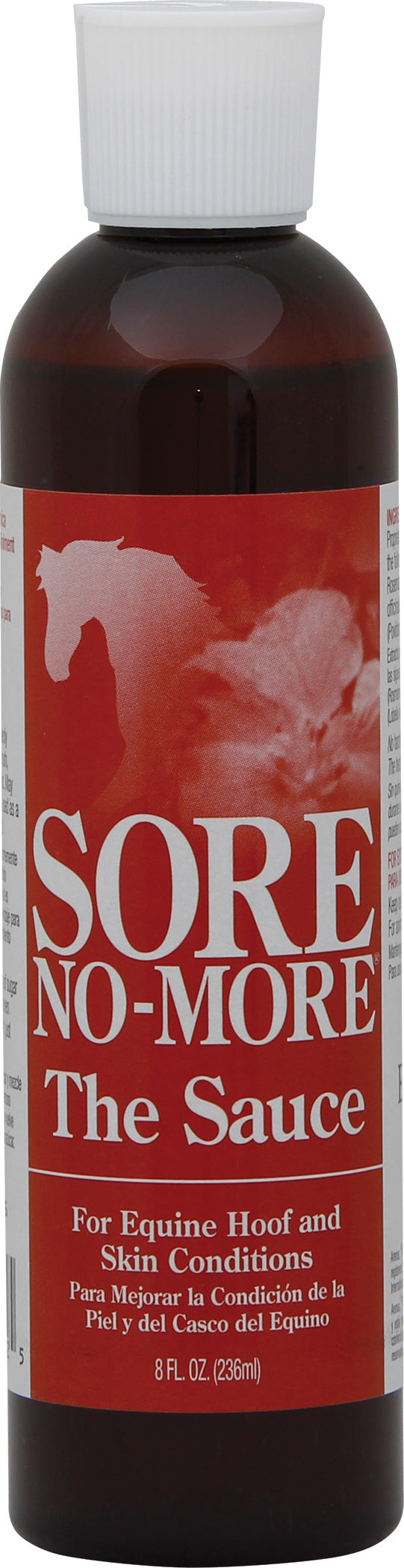 Sore No-More® The Sauce is an herbal formula designed to help treat equine skin and hoof conditions, infections and abscesses. The Sauce acts as a powerful analgesic, antifungal and antibacterial solution to tackle the most challenging hoof and skin conditions, including thrush, rain rot, sweet itch and abscesses that can cause severe discomfort and inflammation. The Sauce has been shown to help reduce infection, discomfort and inflammation while being gentle on the skin and eradicating the fungal or bacterial problem.