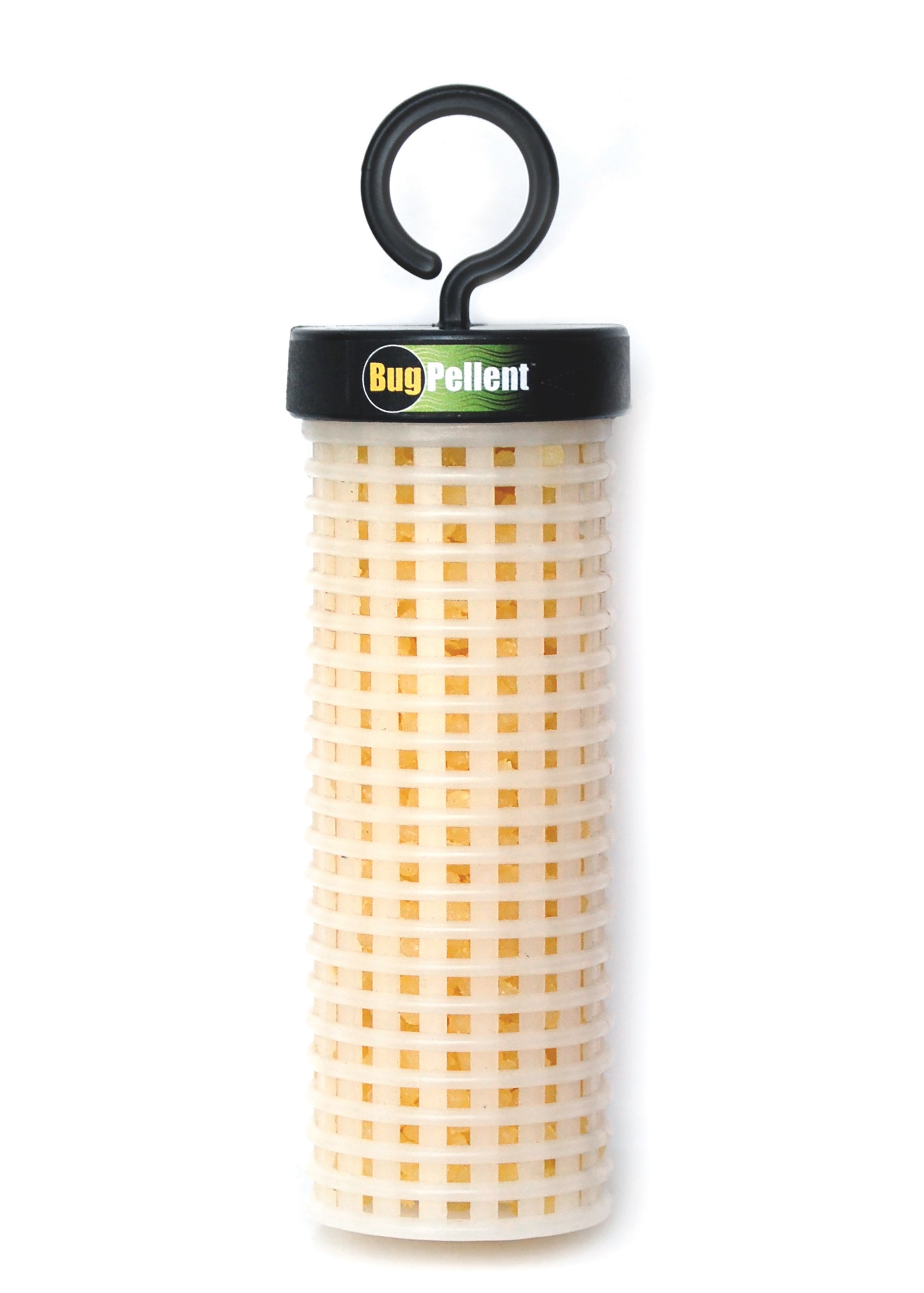 BugPellent® is continuous, chemical-free pest control that works. Non-toxic and economically refillable, BugPellent hangs in your stable, run-ins, garage, patio or any other spot where insects are a nuisance. A solid natural insect repellent with a patented vapor design disperses a pleasant vapor continually without batteries, flames or electricity. People love the smell, but flies, mosquitoes, ticks, black flies and gnats hate it, leaving you and your animals in peace. It also reduces the number of spiders that take up residence. This system replaces barn-wide spray systems that can expose people and animals to toxic chemicals. Pyrethrin-free, pyrethrum-free and pyrethoid-free, BugPellent contains nine natural essential oils and organic waxes. With no sticky strips or message bags, it simply hangs easily anywhere you need it. Each refill lasts up to two months.