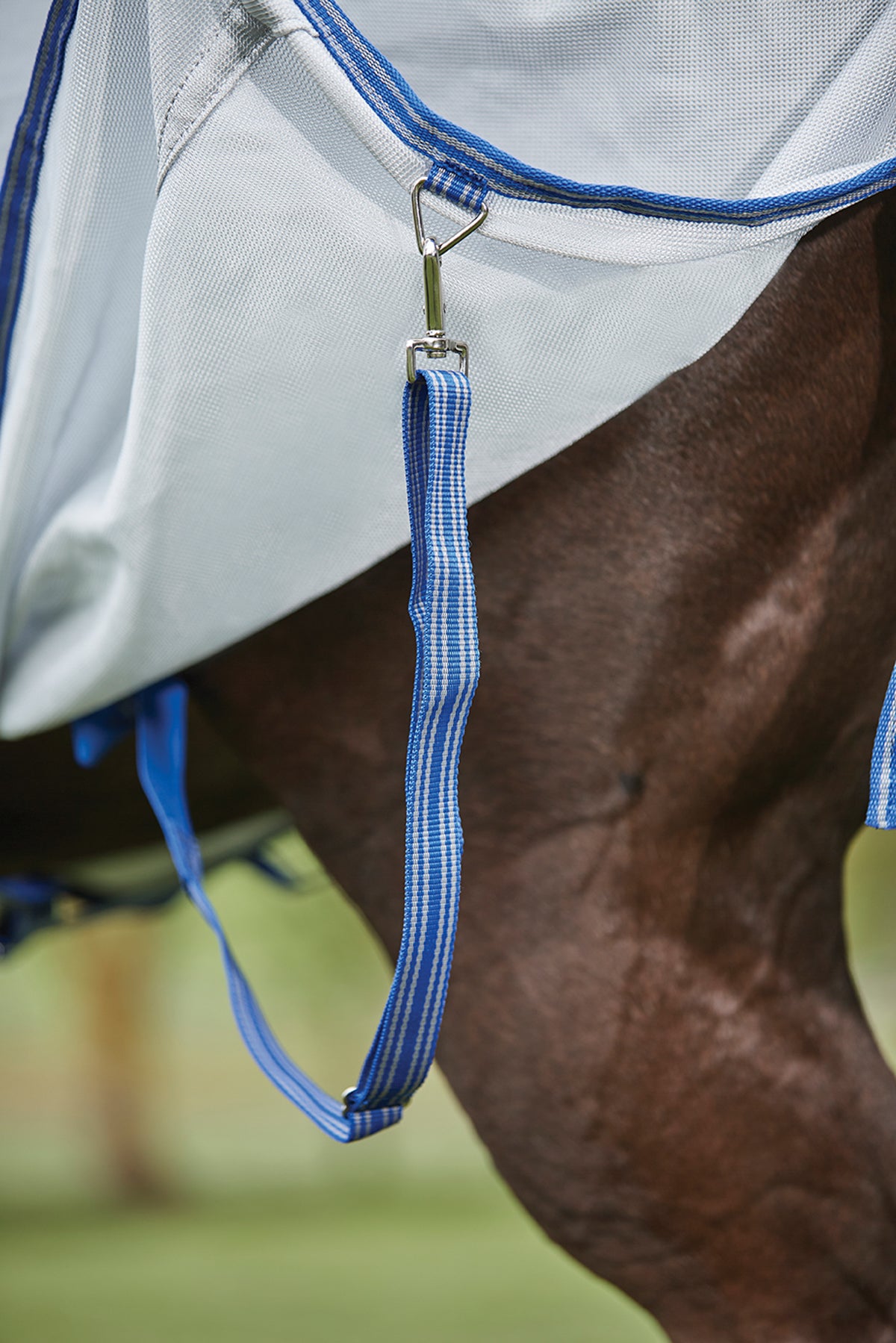The Ezi-Clip front closure creates a custom fit and is fast and easy to use. An adjustable belly band fully covers your horse’s sensitive underside to provide full protection from biting insects. Elasticized, adjustable and removable leg straps move and stretch with your horse to ensure comfort and fit.