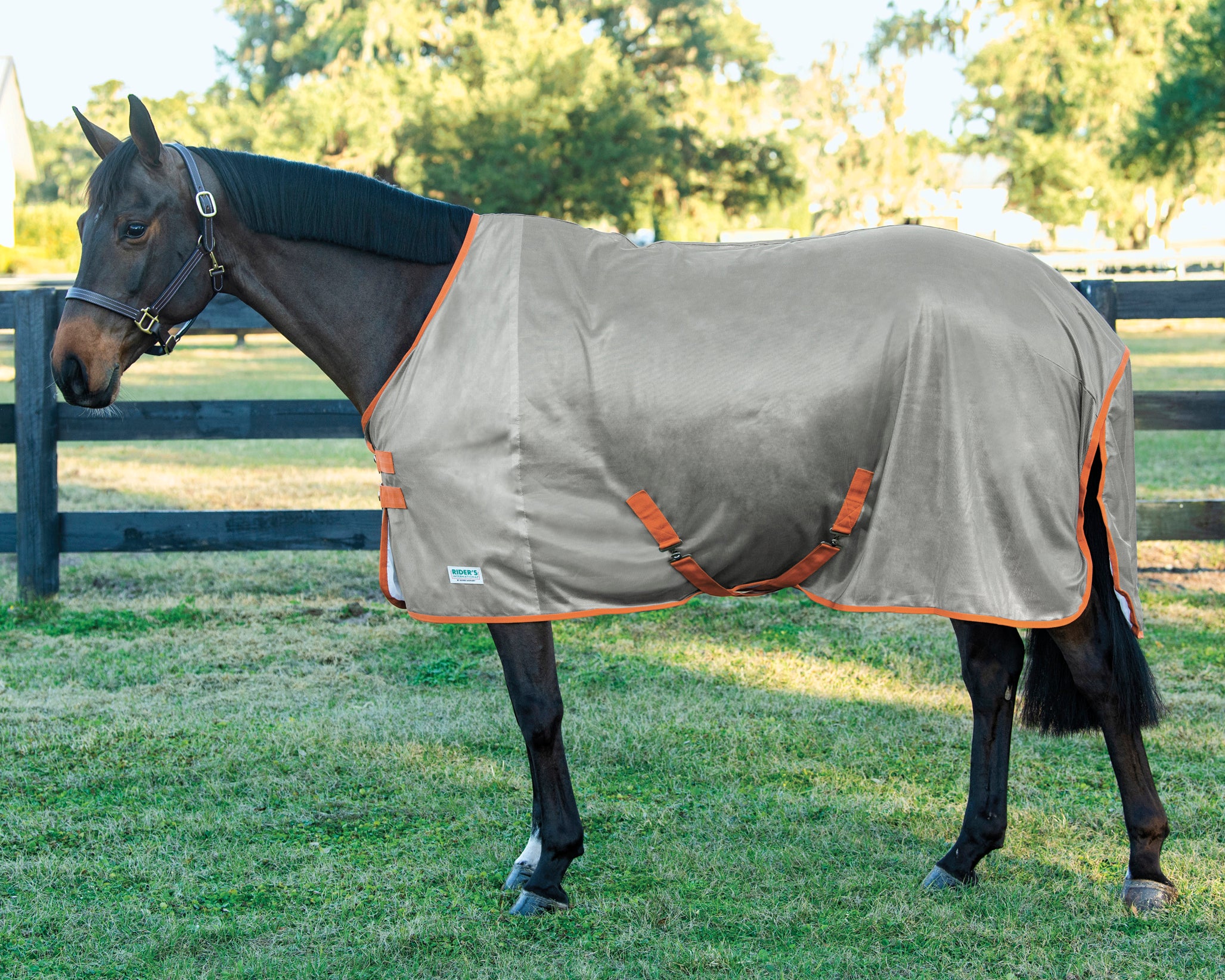 The Rider’s International™ is an affordable, durable option for keeping your horse comfortable in summer weather conditions. Made of lightweight and breathable small mesh fabric, it stays secure with a double surcingles and front closures, adjustable cross belly surcingles and leg straps. Shoulders are lined, and tail flap boosts coverage.
