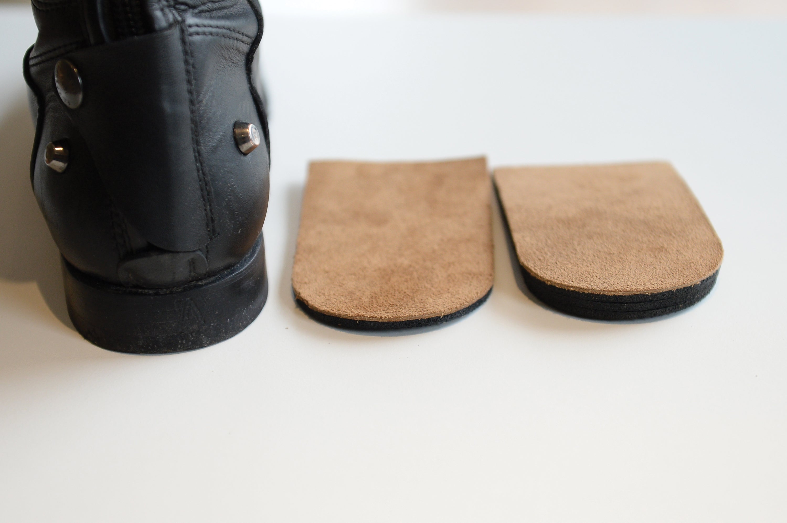 Just peel away one or two layers to create your desired lift height. EquiFit Adjustable Heel Lifters are made of resilient, latex-free rubber that absorbs shock as you walk. A leather cover adds durability. Pair.