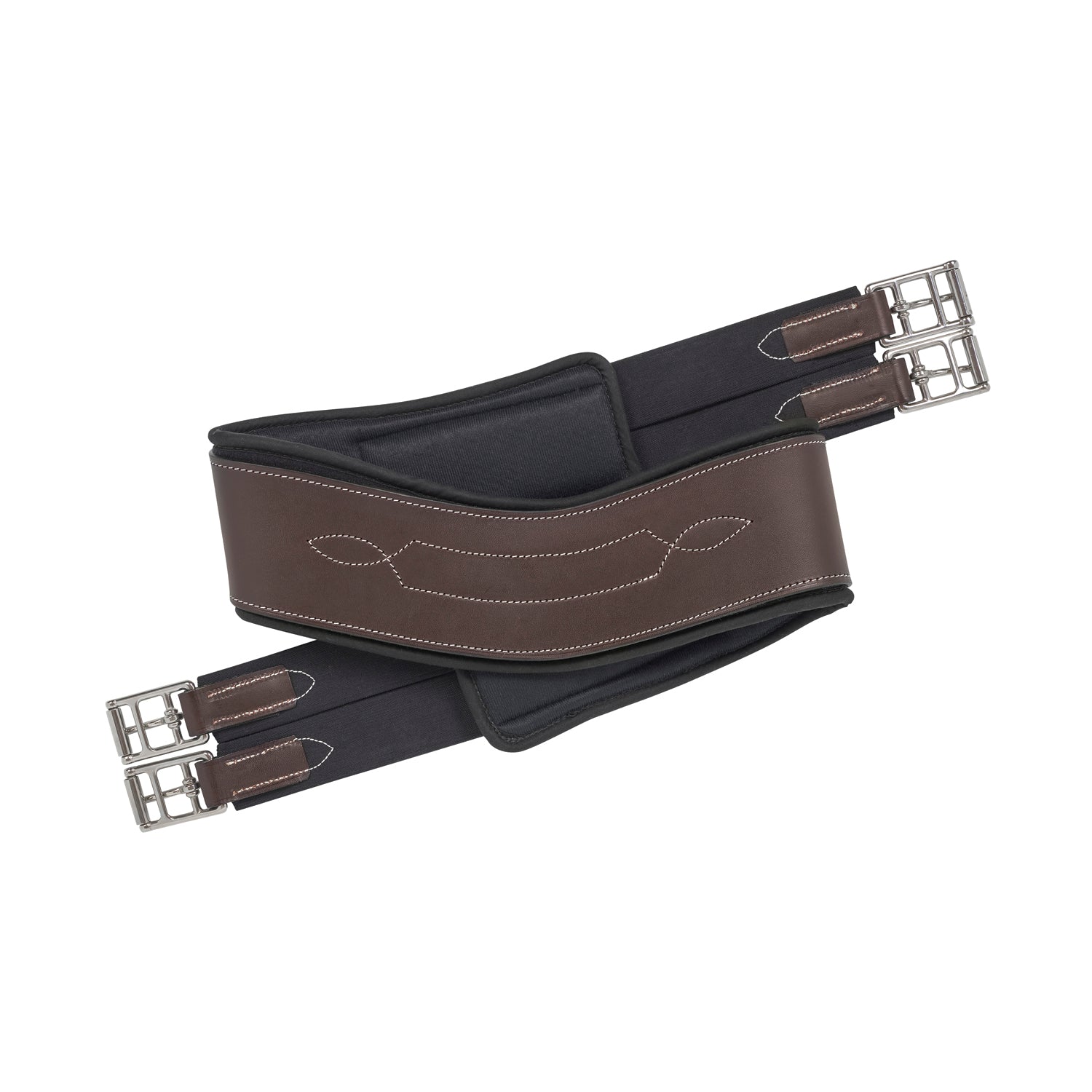 Like all EquiFit® products, the EquiFit Anatomical T-Foam™ Hunter Girth delivers superior comfort, stability, fit and quality. This classic, understated, anatomically shaped girth features fancy-stitched English leather girth with a removable T-Foam lining against the horse. The ergonomic shape of this girth allows the horse freedom of movement as it keeps the saddle stable. Double elastic at both ends and stainless steel roller buckles ensure easy and optimal adjustments.