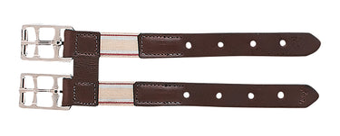 Girth Extender with Elastic adds up to 8" to any girth. Features elastic inserts and stainless steel roller buckles for easy tightening. Made from quality brown leather. Use the same girth on all shapes and sizes!