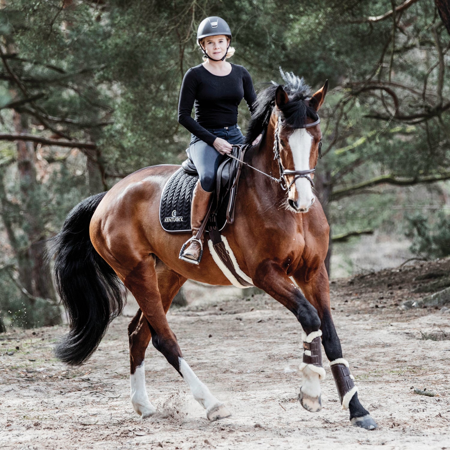 The Kentucky Horsewear Sheepskin Anatomic Long Girth is designed to follow your horse’s shape and natural movements to ensure both comfort and freedom. Crafted from high-quality artificial leather and vegan sheepskin, it relieves interference and pressure at the horse’s shoulders and elbows. And is 100% animal-friendly.