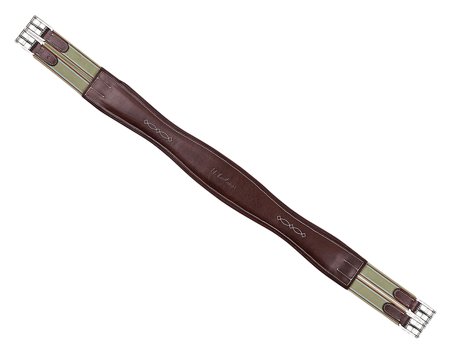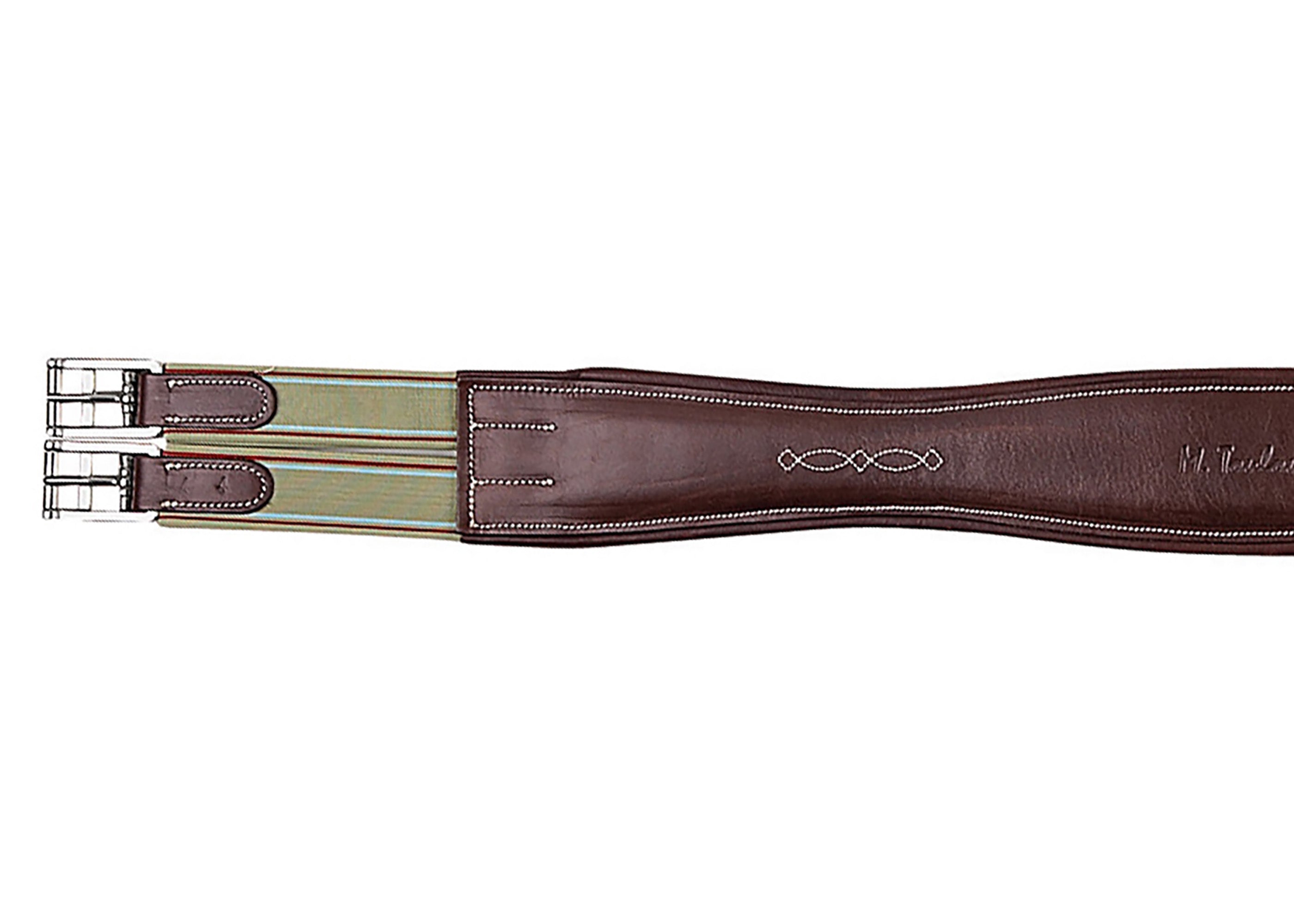 The Marcel Toulouse Contour Shaped Padded Leather Girth is a classic with fancy stitching and an ergonomic shape. Triple elastic at both ends and stainless steel roller buckles promote easy adjustments.