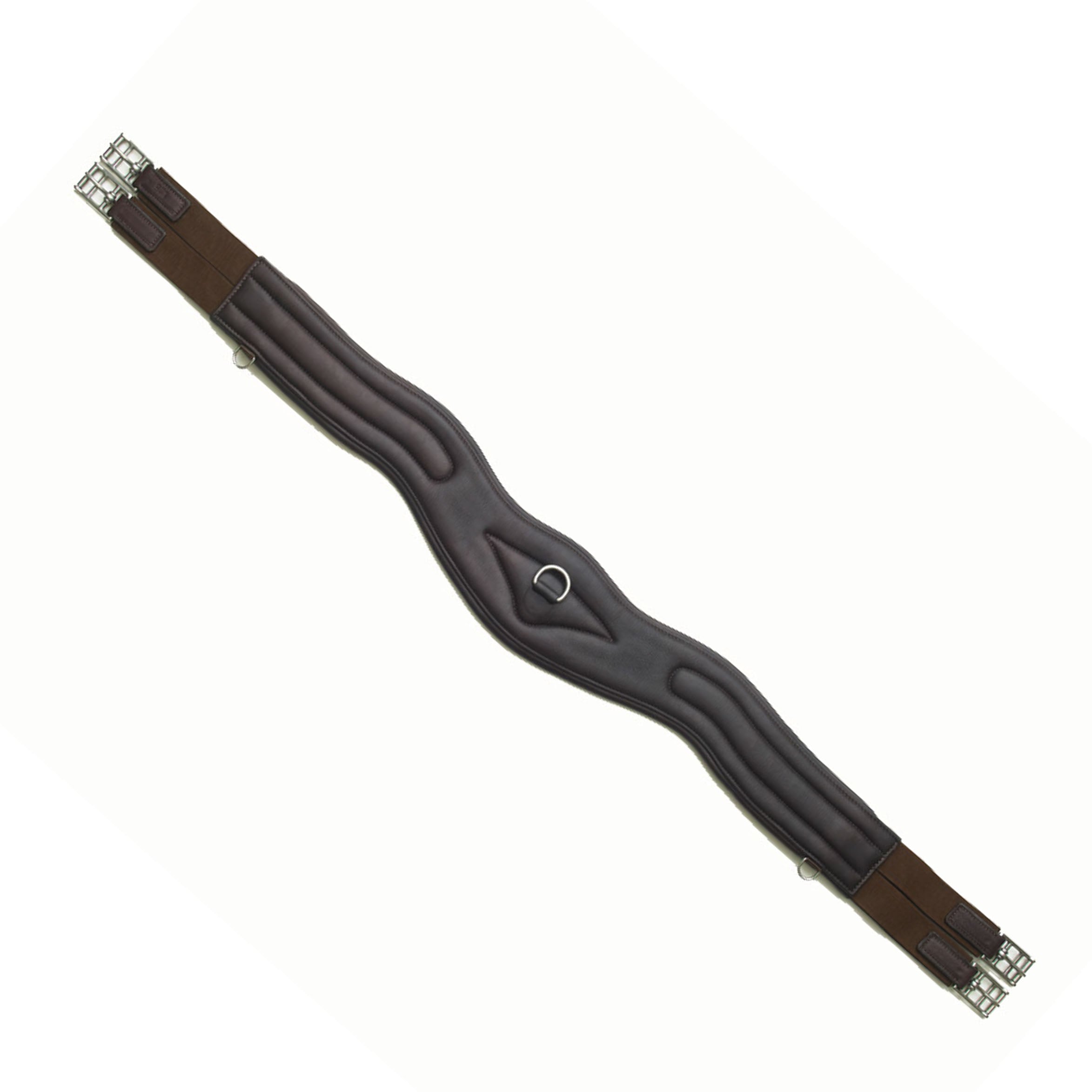 This Ovation® Anatomic Comfort CC Girth is shaped for horse comfort and made from soft, top-grain, vegetable-tanned leather. Triple elastic and curved stainless steel buckles at both ends allow easy adjustments. Stainless steel d-rings are provided for the attachment of training aids.