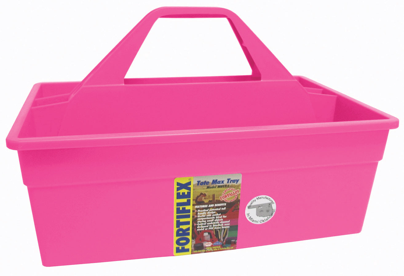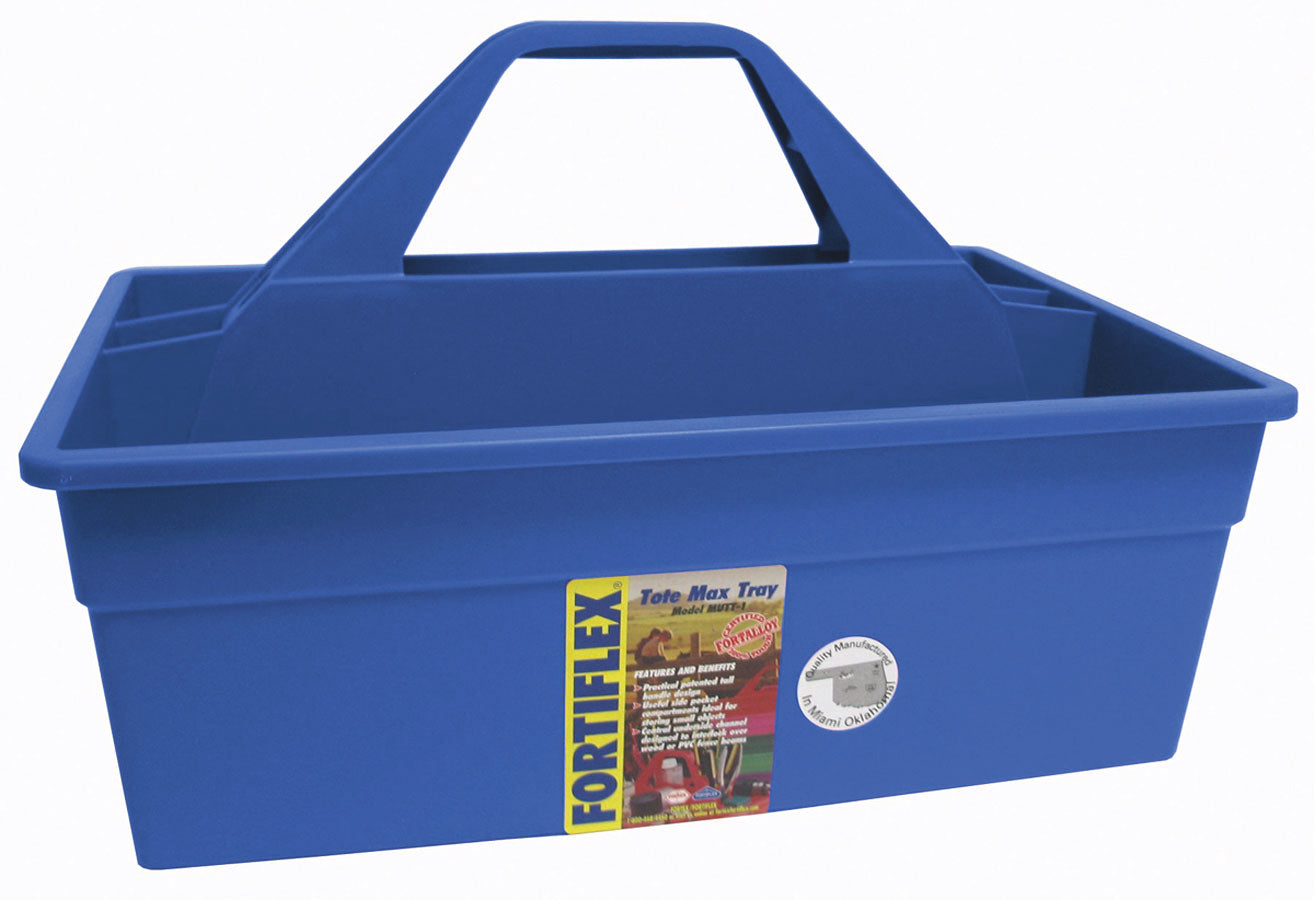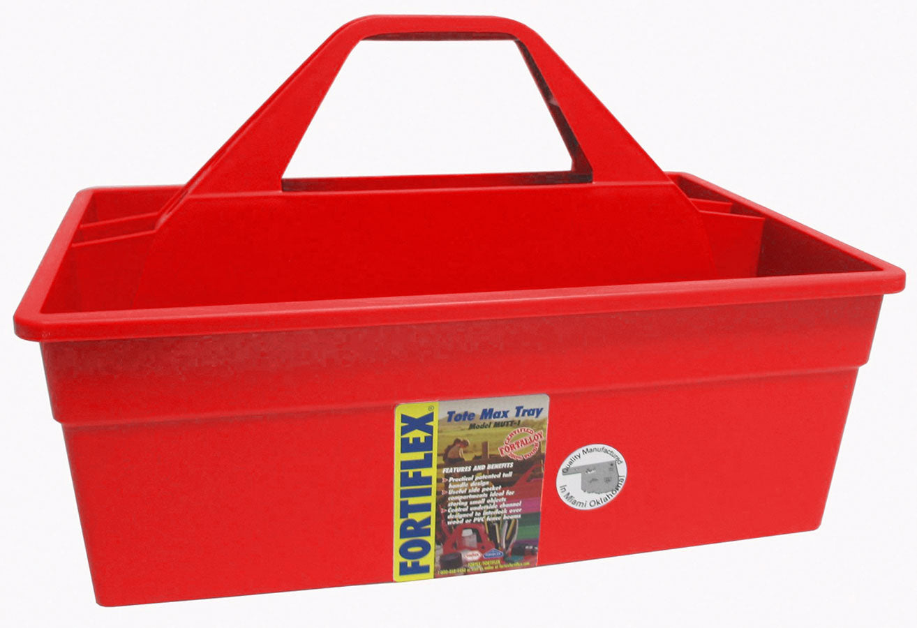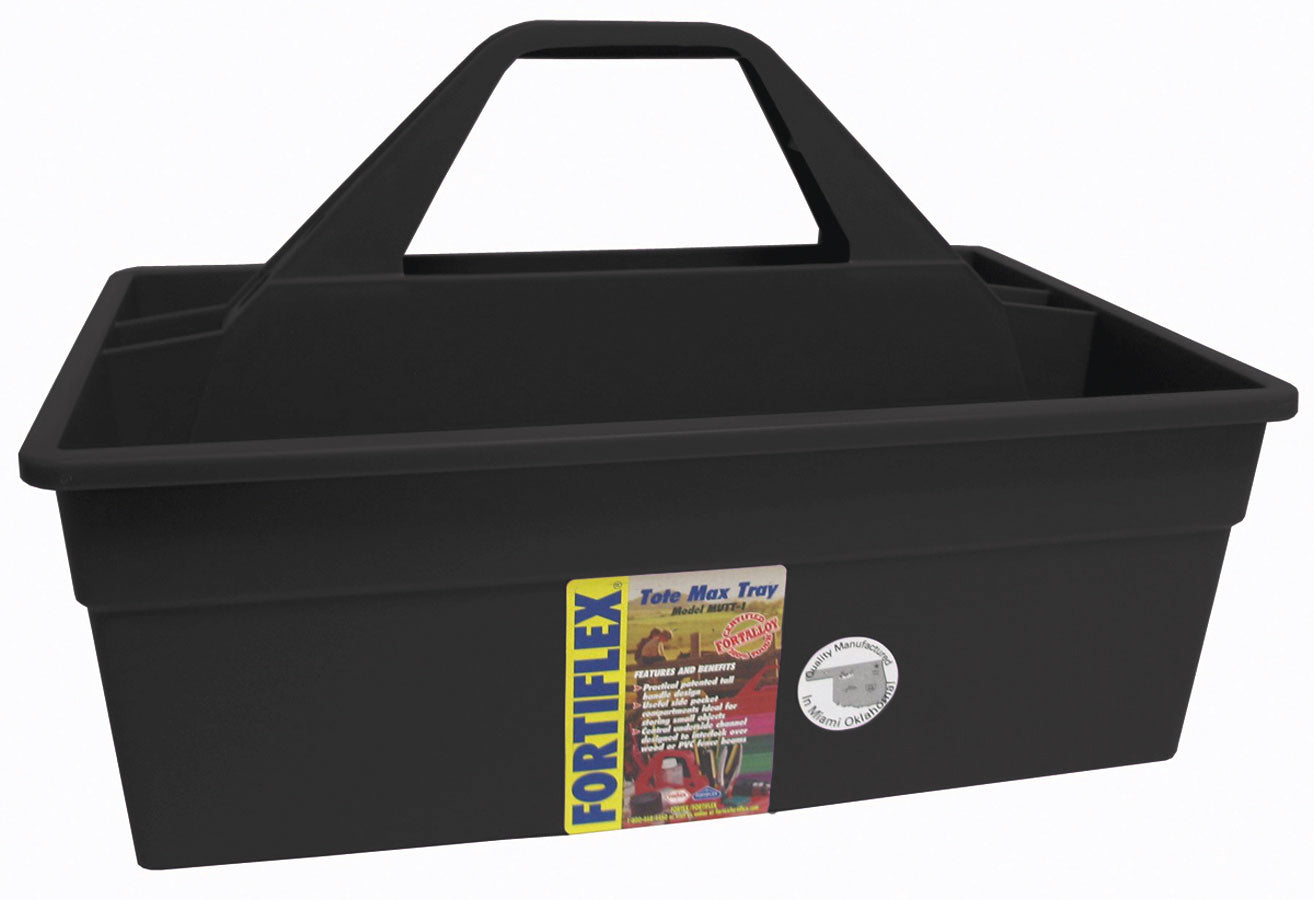 Maximize your efficiency with the Fortiflex® Grooming Tote. Its simple, practical design keeps your grooming tools organized with side compartments and openings in the handle for long objects such as hoof picks and scissors. A high handle makes it easy to carry wherever you need your supplies; a channel along the underside interlocks over wooden or PVC fence beams. Made of FORTALLOY®, an exclusive rubber-polymer blend, this tote is exceptionally strong even in cold temperatures and rinses clean easily. 17"L x 11"H x 11"D.