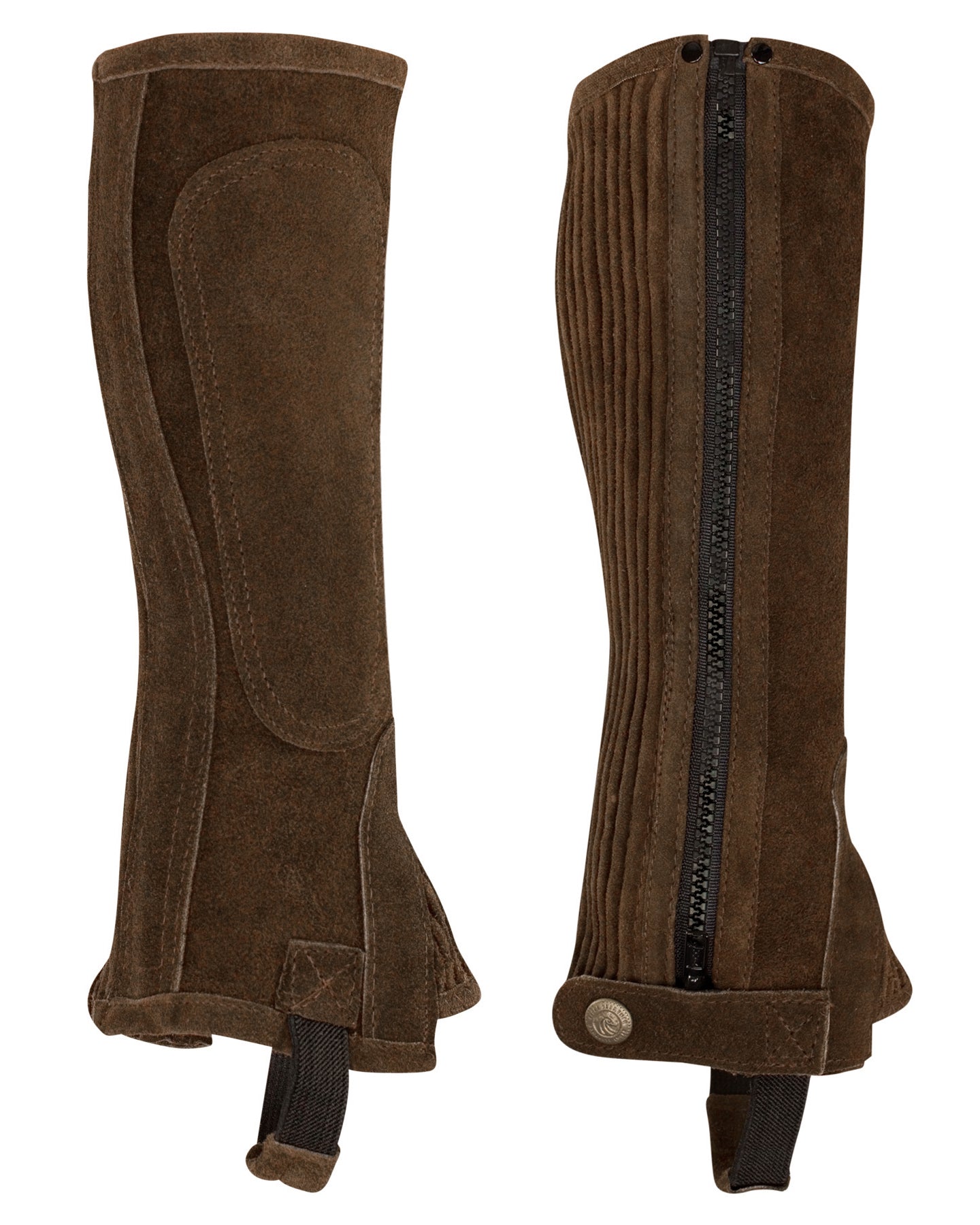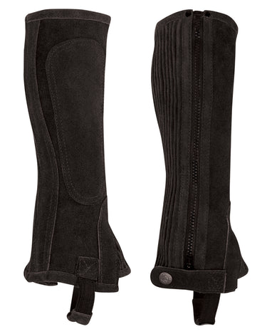 Perri’s® Children’s Zipper Half Chaps deliver great quality at an exceptional price. Crafted from supple suede cowhide, these half chaps feature reinforced inner legs and stretch panels. The panels provide a near custom fit and help the chap form to the young rider’s legs to provide peak performance and comfort.