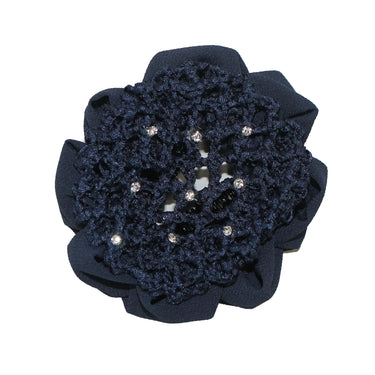 With the Hair Net Bun Cover, a neat and elegant appearance is all in the details. This hair bun cover is perfect for the stylish equestrian as it keeps hair securely in place while adding a hint of bling. A spring clip is attached to an elasticized fabric scrunchie. A crocheted net studded with sparkling clear rhinestone contains stray hairs.