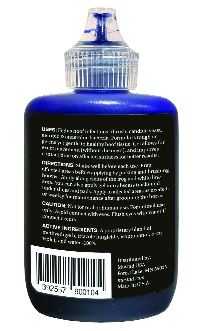 ComfortMix Thrush Treatment by Mustad is a new formula that will not harm sensitive tissue! This is a thin-gel formula designed to help treat thrush and white line disease in equines. With a pinpoint, no-clog nozzle, it offers exact placement of the product to affected areas of the hoof and a mess-free application.